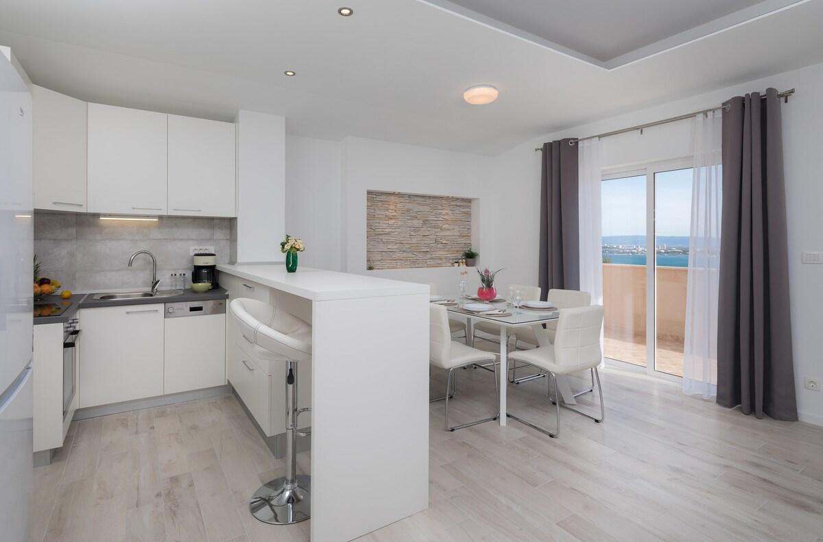 Royal es un apartamento nuevo, moderno y lujosamente renovado con jacuzzi, a 50 metros de la playa. Tiene 50 metros cuadrados y una terraza de 30 metros cuadrados. Cuenta con 2 dormitorios, sala de estar, cocina totalmente equipada con comedor, baño con gran ducha, barbacoa, garaje (1 coche), TV de pantalla plana en todas las habitaciones y wifi gratuito. Ofrece una gran terraza con vistas al mar abierto y a las islas circundantes. Se puede disfrutar del buceo cerca. Trogir está a 5 km y el aeropuerto de Split a 8 km del alojamiento.