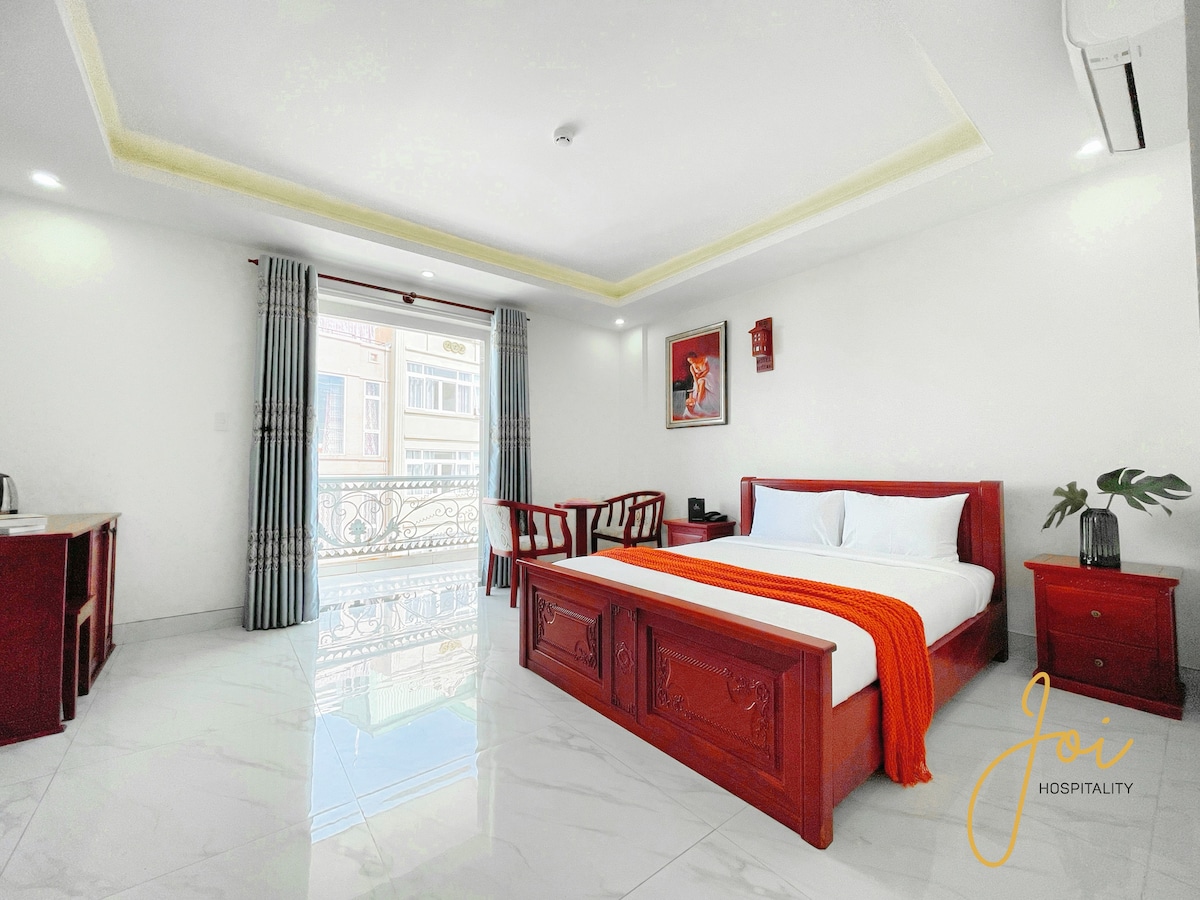 MINIMALIST STUDIO with huge windows and natural light. Enjoy a quiet and comfortable stay ideal for couples/solo travelers. PRIME LOCATION: Only a 5-minute walk to Back Beach (Bãi Sau). Easy access to seafood restaurants, local food, and main attractions (Jesus Statue, Lighthouse). Includes Queen Bed, A/C, TV, fridge, and private clean bathroom.