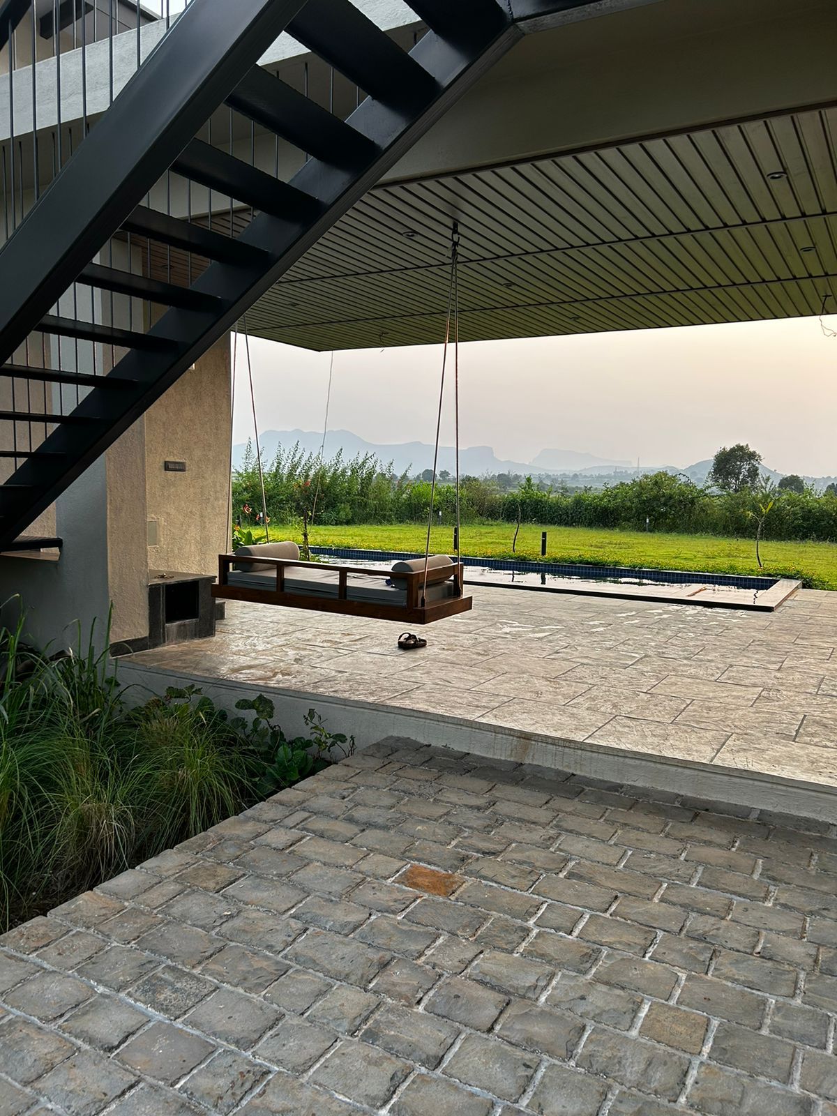 Disfruta de un retiro sereno en Sohana, una pintoresca granja de 3 dormitorios y 4 baños en Karjat. Este refugio, adornado con exuberante vegetación, cuenta con una piscina, un río que fluye y aparece en Hotelier India. El diseño rústico, hecho con amor, ofrece espacios amplios y abiertos, que invitan a una sensación de libertad y comunión con la naturaleza, un escape ideal para una desintoxicación de la ciudad. Destaca por su compromiso con la sostenibilidad ambiental. Esta villa tiene capacidad para 15 personas durante la noche y 30 personas durante el día, por lo que es ideal para fiestas.