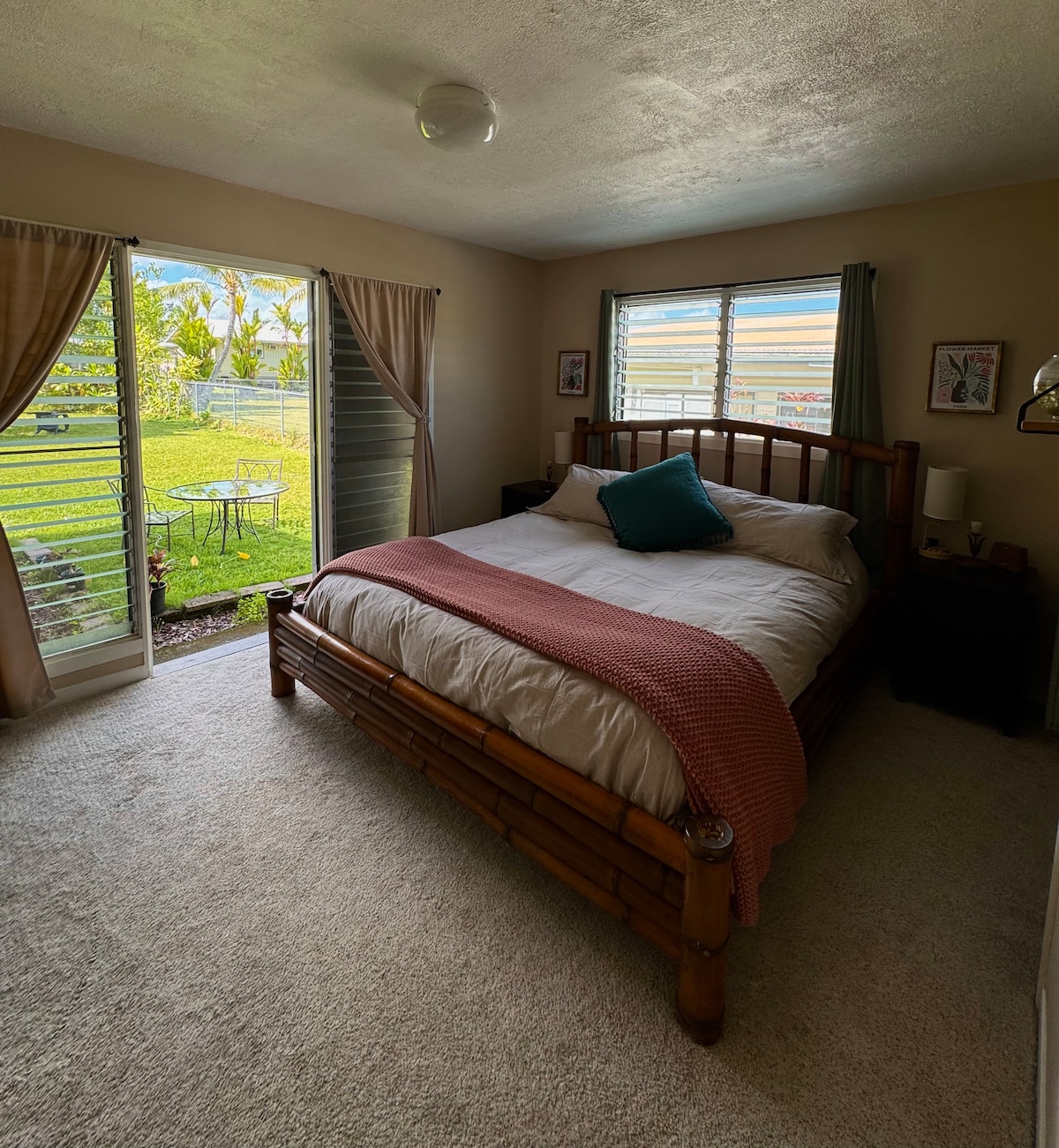 Este hermoso apartamento con aire acondicionado es quizás uno de los alojamientos mejor ubicados de Hilo. Cerca del centro de la ciudad, ¡pero los terrenos parecen un oasis zen de inspiración polinesia! Arroyos y estanques llenos de Koi bordeados de senderos serpentean a través del complejo con piscina. ¡A minutos del aeropuerto, mercados de agricultores, golf, tiendas del centro y más de 100 restaurantes! ¡El complejo también respalda el Parque Estatal de Wailoa, donde puedes caminar a través de más de 130 acres de hermosos terrenos que conducen a la bahía de Hilo!