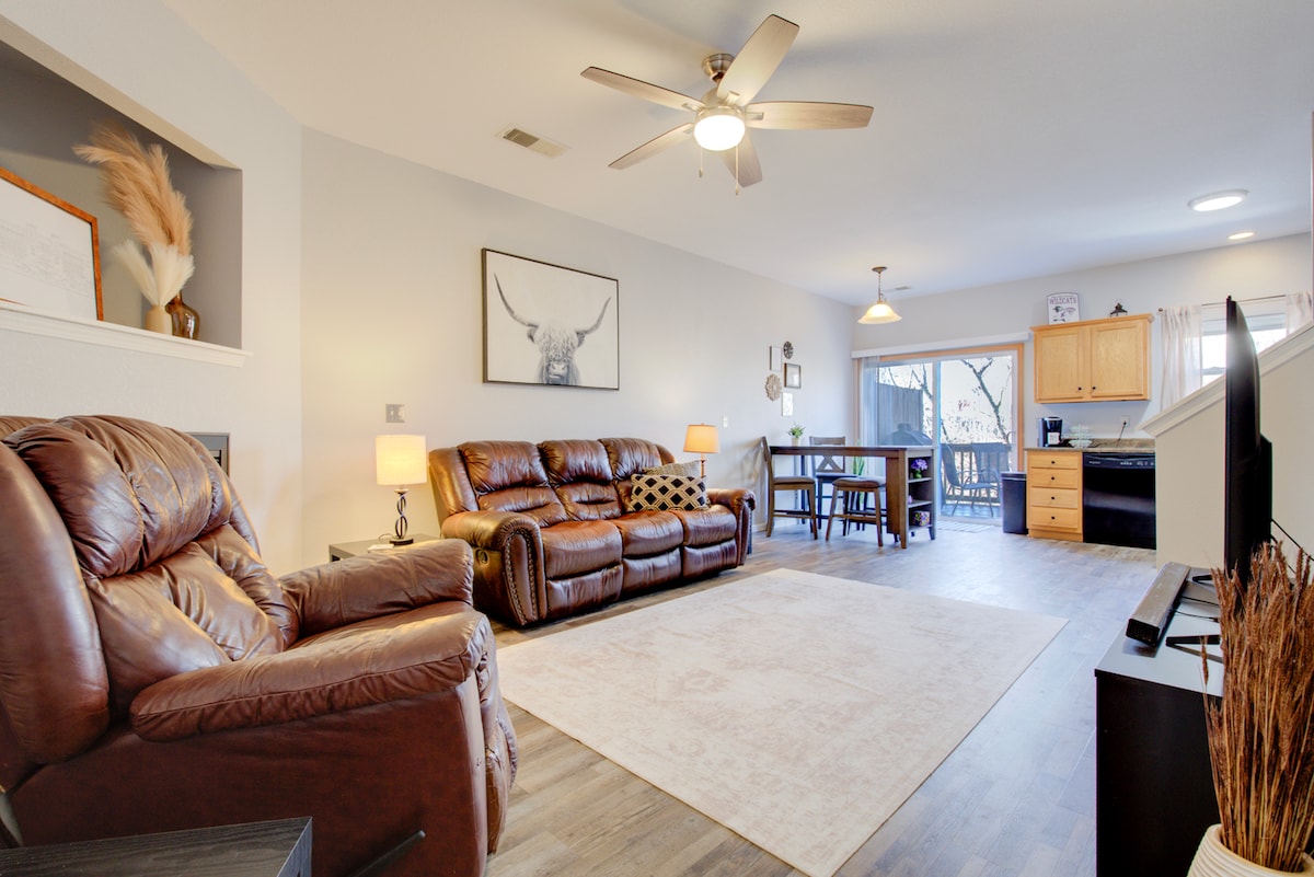 Retiro en Lake View Lodge. Esta impresionante casa con vistas al lago de 180 grados se encuentra en una cresta en Tuttle Creek con vistas al lago y a las hermosas colinas de sílex. Su decoración de cabaña, que incluye muebles de cuero fino, lámparas de cuernos y un enorme soporte de búfalo, le dan un ambiente cálido. Está a solo 10 minutos en coche de la Universidad Estatal de Kansas. Este acogedor refugio es un espacio perfecto para fines de semana de juegos, escapadas de parejas, retiros de negocios/iglesia o unas vacaciones familiares.