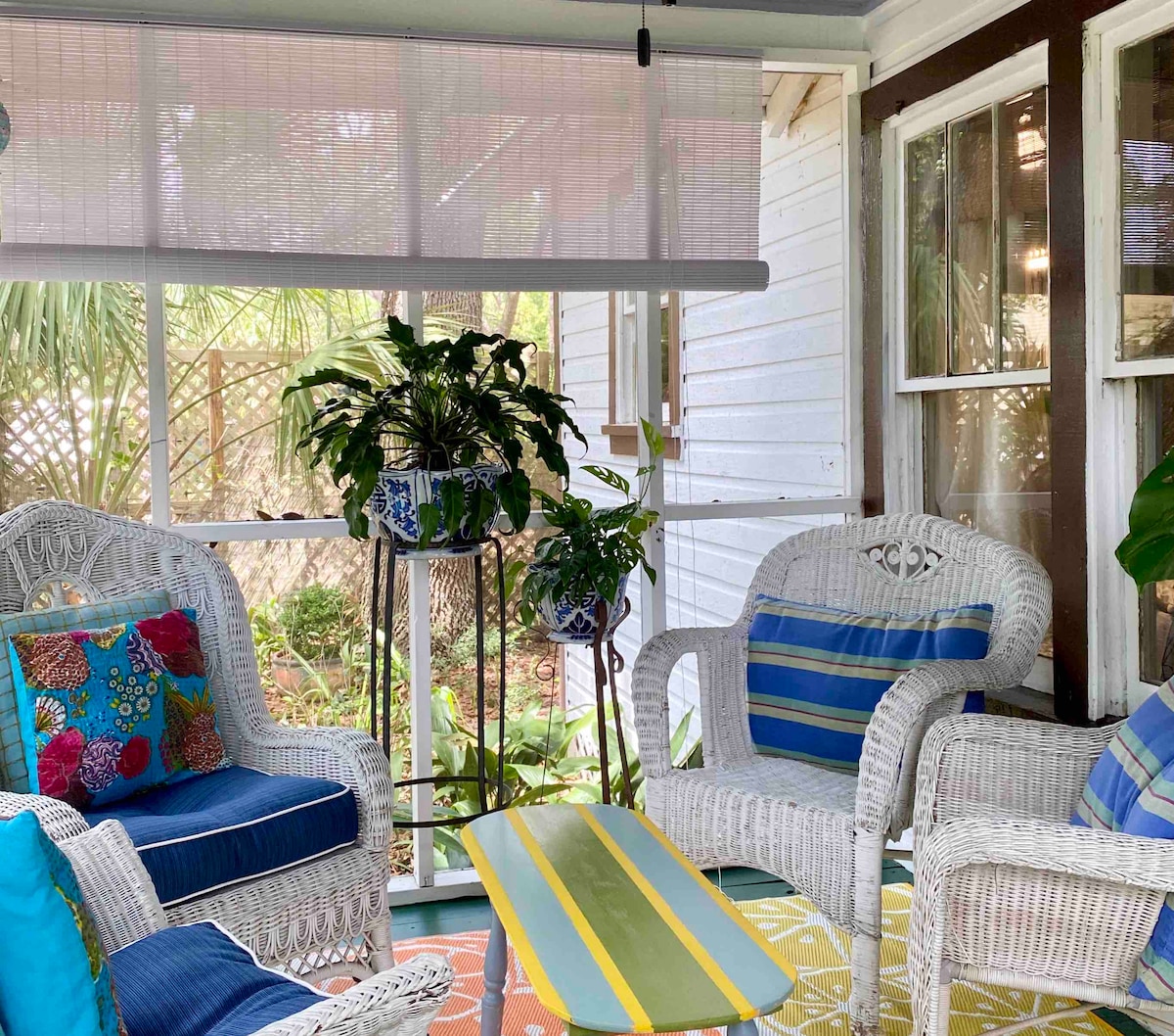 ¡Te damos la bienvenida a Natural Florida! A unos 30 minutos del 🏈 estadio de la FSU, a 5 minutos del Golfo. Casa de campo vintage de 1938, 2 dormitorios/2 baños, bajo antiguos robles musgosos y palmeras en Panacea, Florida. Cómodo, decorado excéntricamente con cocina bien equipada. Cerca de la rampa para botes, los mejores mercados de mariscos y maravillosos restaurantes. Cerca de parques públicos nacionales y estatales: Refugio de vida silvestre y faro de St. Marks, AREA X, Wakulla Springs, Florida Birding & Hiking & Bicycle Trails, Golfo, bahías, lago y playa, observación de aves, peces, ¡DIVERSIÓN!