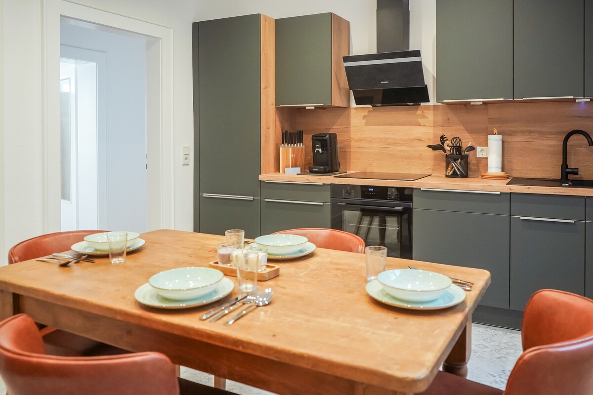 *Tu descanso en el castillo con vistas a un antiguo jardín inglés y sauna* Este luminoso apartamento con diseño interior especial y muebles de alta calidad está situado en un anexo del castillo barroco Louisenthal, único en su vida. Amplia cocina-sala de estar, baño moderno con ducha de efecto lluvia, sauna, dormitorio con vistas al valle, un piano de cola y tocadiscos para horas musicales, innumerables oportunidades para actividades en la zona: ¡un apartamento de ensueño para relajarse y sentirse bien!