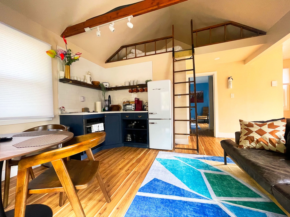 Despiértate con vistas a las colinas desde este chalet de inspiración escandinava con techos de catedral con paneles de madera, muebles elegantes y suelos de hormigón. Comparte una copa de vino con un amigo junto a una elegante chimenea y una mesa de café de vanguardia en una elegante sala de estar. Informa al anfitrión si tienes pensado traer un perro, ya que hay un límite de peso de 15 libras. El número máximo de huéspedes/visitantes/personas permitidas en la propiedad es de 2. El propietario vive en la propiedad y está disponible para cualquier cosa que los huéspedes puedan necesitar.