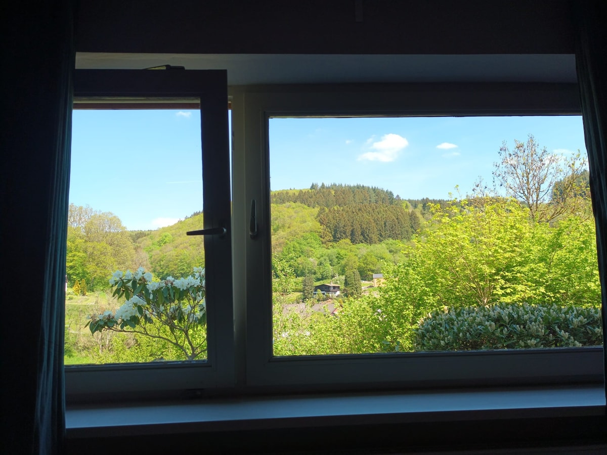 Mijn man en ik bieden aan: een ruim (90m2) appartement van alle gemakken voorzien op tuinniveau. Aan de rand van een klein dorpje in de Eifel, met vrij uitzicht over het agrarische heuvellandschap met bossen. Onderkomen is niet geschikt voor kleine kinderen. Kinderen 8 tot 12jr verblijven gratis. neem contact op voor u boekt. Rust en ruimte! Eigen parking en entree. Terras en tuin (2000m2). Honden zijn welkom. (laat ons weten bij boeking) We serveren GEEN ontbijt.