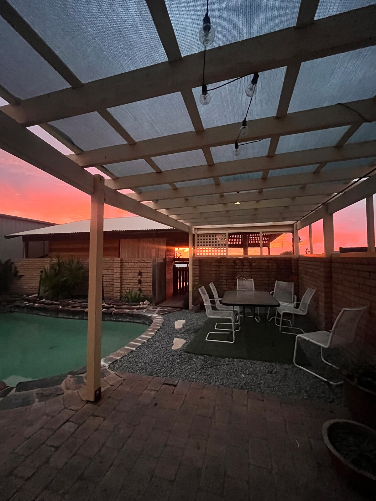Precioso, fresco, funky y espacioso estudio ubicado en el jardín trasero de una nueva casa de la federación a pocos pasos de la costa de Geraldton y el CBD. Enorme y moderno baño privado, lavandería, cocina pequeña y sala de estar. Internet de alta velocidad. Aproximadamente 60 m2 de espacio para relajarse y admirar el entorno.