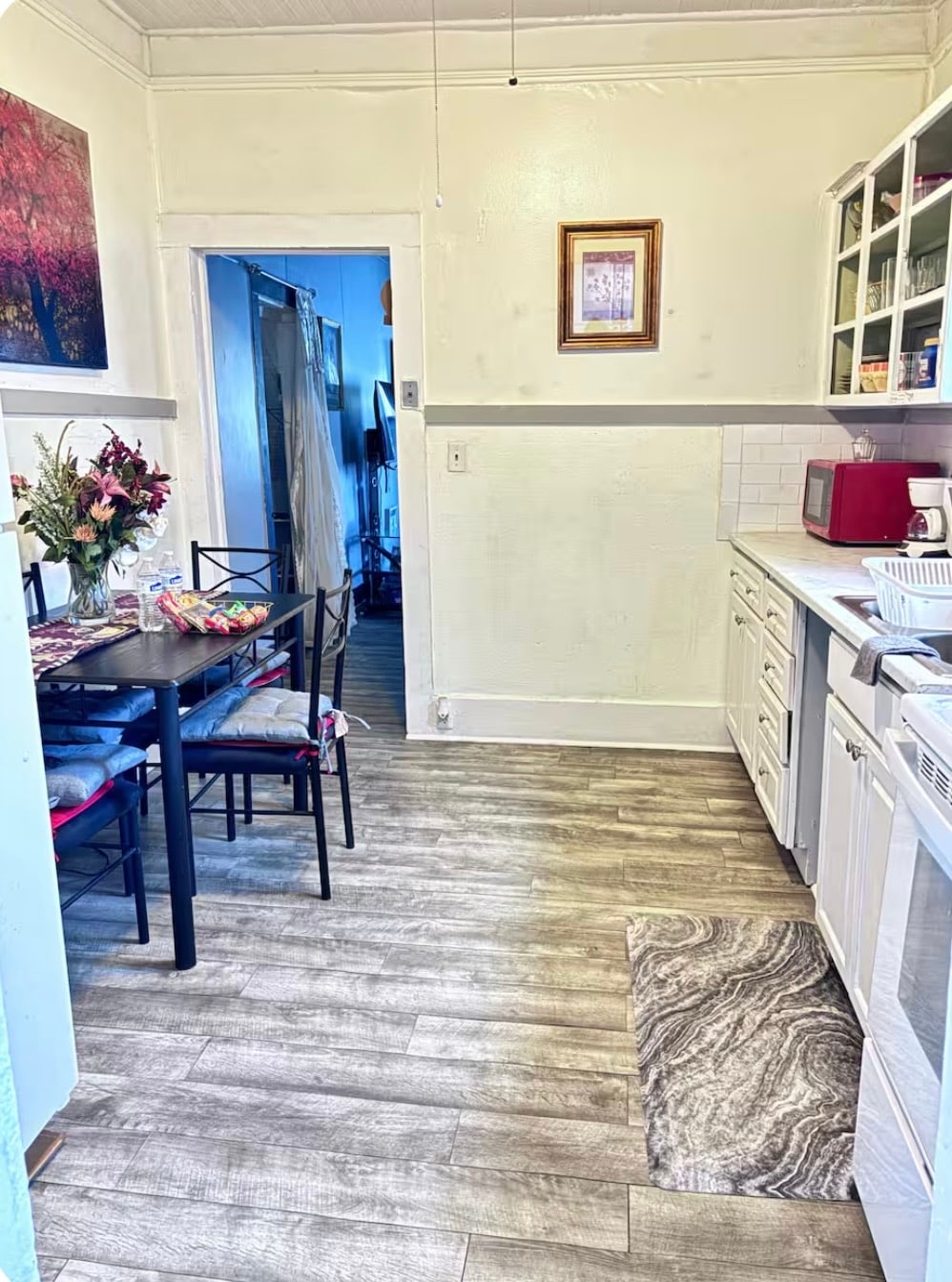 La casa tiene 3 dormitorios, 2 baños completos, una sala de estar, una cocina totalmente operativa que incluye cubiertos, platos, ollas y sartenes, una zona de comedor, wifi, cable, una lavadora y secadora, una tabla de planchar y plancha y una chimenea. Hay una cama tamaño king en el dormitorio principal, una cama tamaño queen en la segunda habitación y 2 camas de tamaño completo en el tercer dormitorio. Puede alojar cómodamente a 8 personas. Esta propiedad te dará la sensación de estar en CASA. Se añade un 5 % de impuesto hotelero y una tarifa de transporte de 5 dólares.