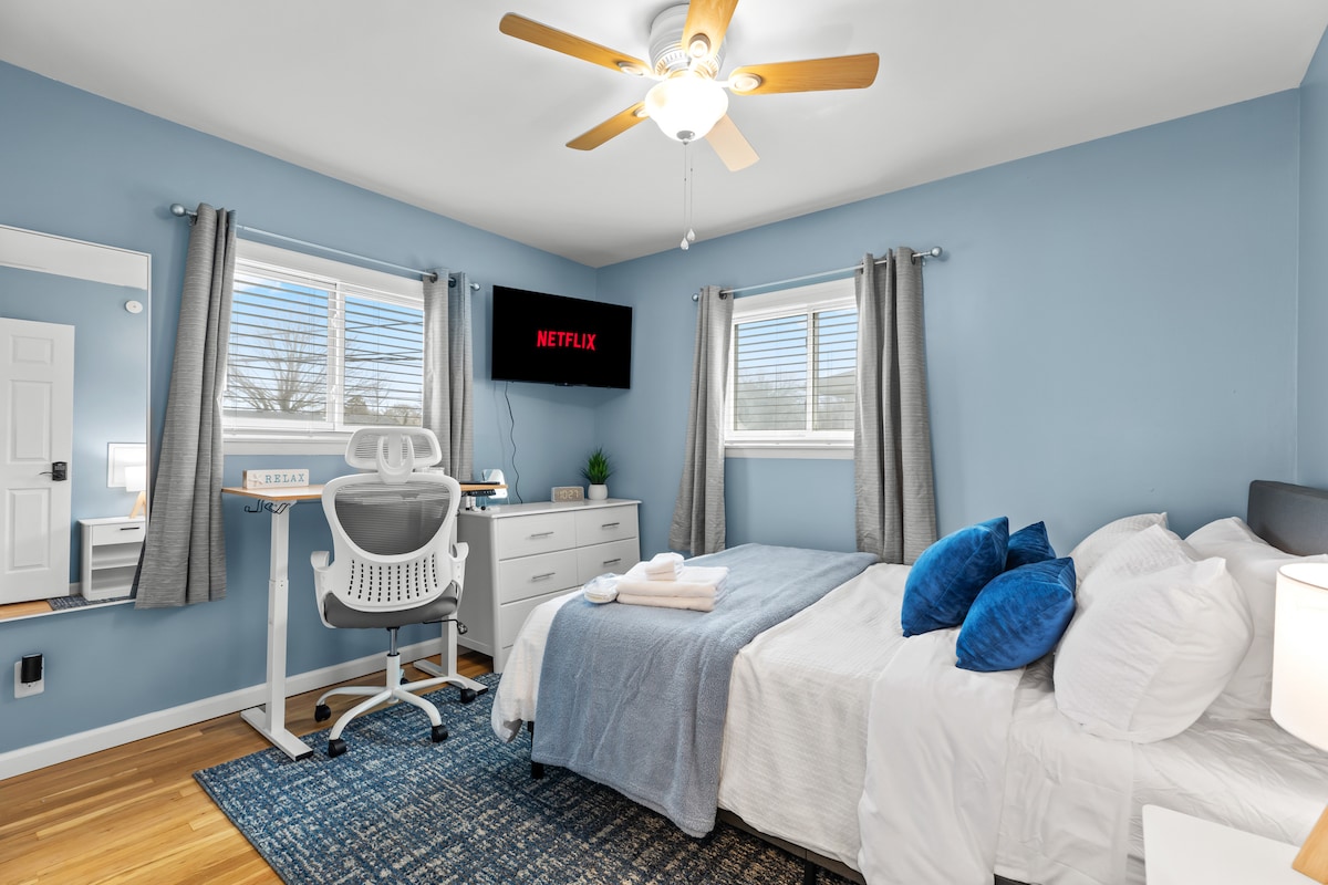 Reúne a tus amigos o familiares en nuestra espaciosa casa moderna de 223 metros cuadrados, ¡diseñada para grupos grandes! Con mucho espacio para relajarte, te encantarán las zonas comunes bellamente decoradas y dos espacios de trabajo, perfectos para viajeros de negocios. Disfruta de acceso rápido a internet y de todas las comodidades de un hogar. Situado en el corazón de Sterling Heights, estarás a pocos minutos de las mejores tiendas, restaurantes y entretenimiento. Crea recuerdos inolvidables juntos: ¡reserva ya tu estancia en nuestro refugio perfecto para grandes reuniones!