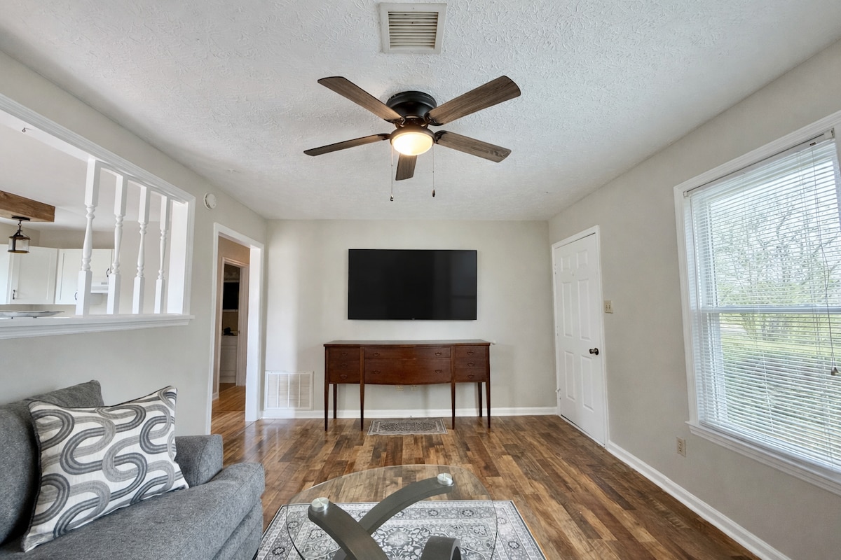 Esta casa recién decorada está cerca de todo, a menos de una milla de la interestatal, por lo que es fácil planificar tu visita. ¿Te encantan las carreras? El Sweet Pea se encuentra a 4 millas del National Corvette Motorsports Park, a 8 millas del Museo Nacional de Corvette y a 6,7 millas de Beech Bend Park. El Sweat Pea tiene una unidad circular grande que debe adaptarse a cualquiera de tus necesidades de estacionamiento. A 20 millas de Mammoth Cave, 14 hasta Lost River Cave y 4.7 millas hasta el campus de WKU.