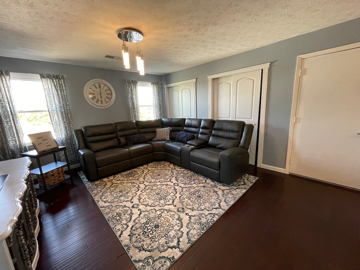 Olvídate de las preocupaciones en este gran alojamiento: ¡es un oasis de tranquilidad! Ubicado en un callejón sin salida. Ven a ser nuestro huésped. Estamos a menos de 5 millas del parque acuático Kings Island Great Wolf Lodge. A 30 minutos del parque estatal Caesars Creek y de las tiendas de antigüedades de Waynssville. Kroger's, Target, Kohl's, Lowe's, TJMax a 5 minutos. A 45-60 minutos de los aeropuertos internacionales de Dayton y Columbus. Estancias de hasta 28 días.