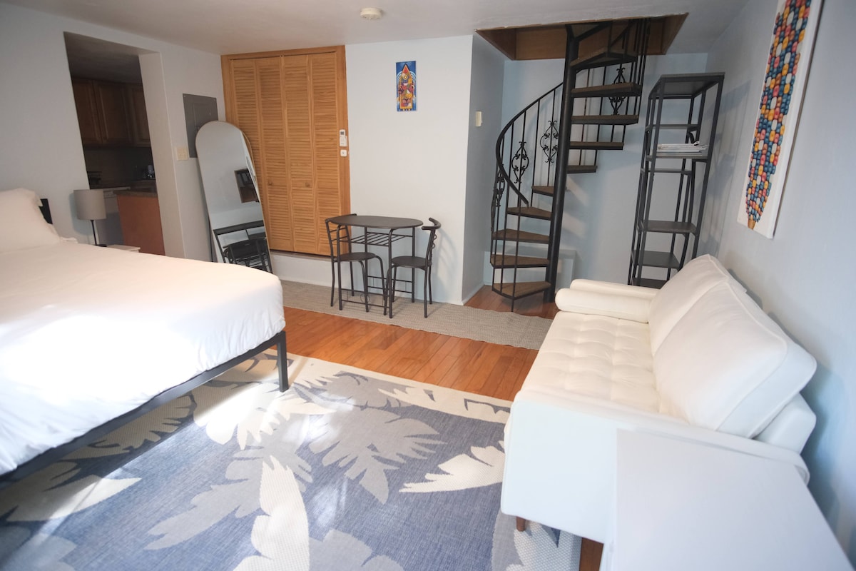 This large studio apartment is located just 15 minutes from the City of Hamilton. It offers the perfect space for a couple or a small family. Including a queen-size bed and two sofa chairs that convert into twin beds, ideal for your little ones. Includes all the amenities of home. You will be very close to some of the best Bermuda beaches, walking trails, golf courses, restaurants, grocery stores and pharmacies. There is an EV charger on site and a bus stop at the bottom of the drive.