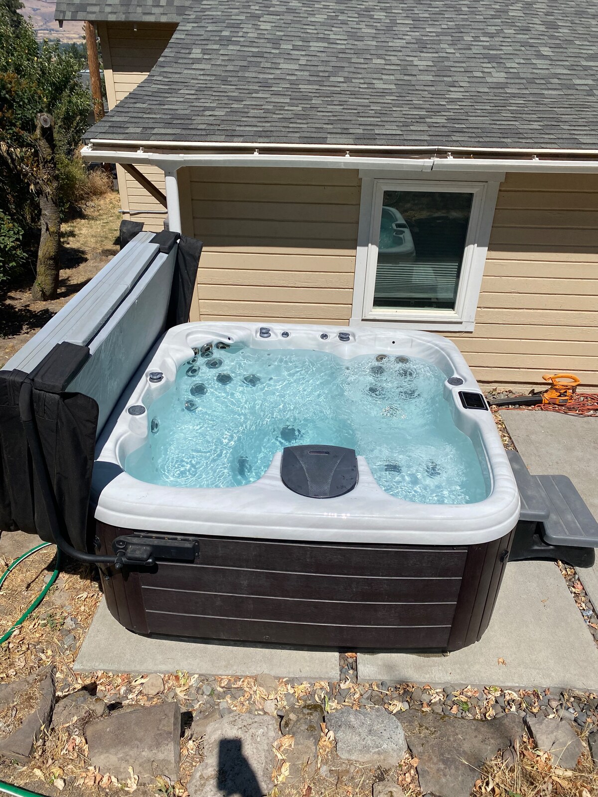 Disfruta de una estancia tranquila frente al río en el corazón de Hood River Valley. Apartamento de 500 pies cuadrados en una casa de madera artesanal con entrada privada, estacionamiento, cocina pequeña, lavandería compartida y el sonido del río, con un poco de ruido de tráfico distante de Tucker Road. Siéntate en el porche y relájate viendo el río Hood. Perfectamente ubicado para recreación o cata de vinos, a 40 minutos de esquí en el monte. Hood Meadows y a 10 de las cervecerías del centro de la ciudad. La tarifa incluye un 8% del impuesto sobre las habitaciones del condado de Hood River. Registro de entrada sin restricción de horario.