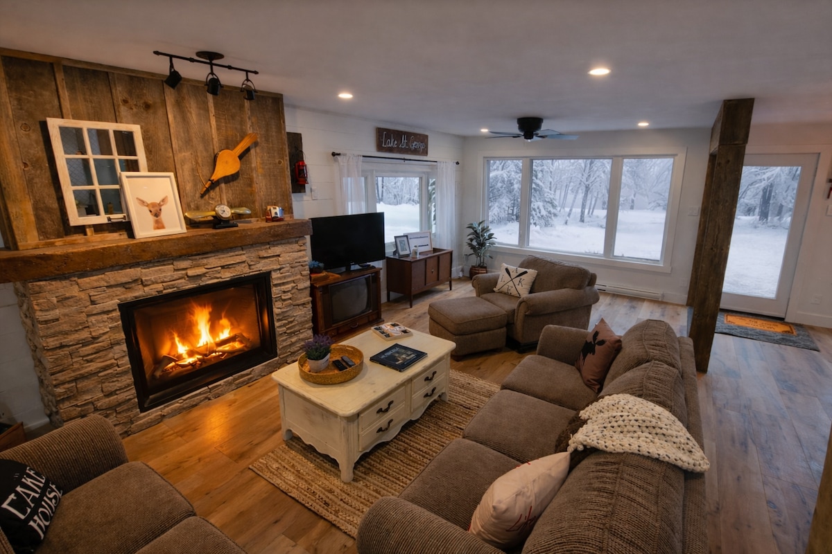 Perfecta cabaña con vista al lago durante las cuatro estaciones a solo 1,5 horas de Toronto, justo enfrente del lago St. George y a solo 30 minutos del centro vacacional de esquí Horseshoe Valley. Este refugio de estilo granja vintage ofrece natación y kayak en verano, y esquí, tubing, senderos nórdicos y días de spa en invierno, además de una enorme chimenea de piedra, juegos de arcade retro, futbolín, fogata, terraza con parrilla y patio trasero privado arbolado. A minutos de Orillia y Casino Rama. Wifi rápido de más de 270 Mbps para estancias de trabajo desde la cabaña. Se admiten mascotas.
