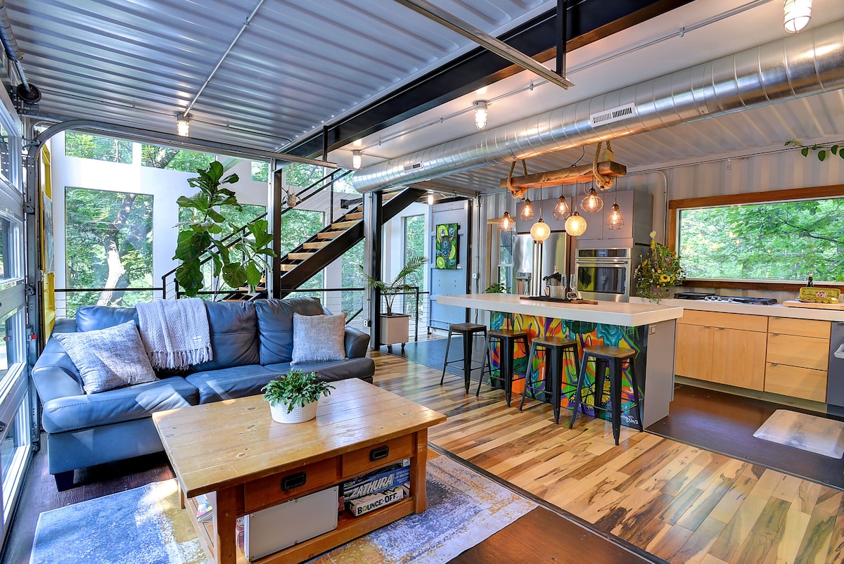 Descubre "The Harmony House", una obra maestra industrial moderna ubicada en un dosel privado y boscoso de 2 acres con vistas a un estanque. Ideal para escapadas románticas o reuniones privadas, esta propiedad única está convenientemente ubicada a solo 20 minutos del aeródromo de Eppley y a 25 minutos del centro de Omaha.
