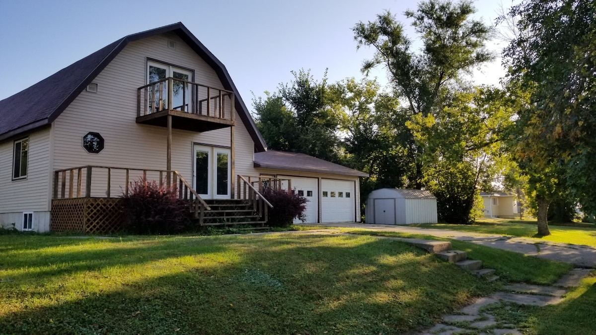 ¡Disfruta de nuestra casa de 2 dormitorios y 2 baños totalmente amueblada para tu estancia! Los senderos panorámicos y un parque están a pocos pasos. A solo 5 minutos en auto del Prairie Lakes Ice Arena y del centro de Watertown. Disfruta de una chimenea de gas en una acogedora habitación de 4 estaciones, una cocina espaciosa, una "cueva del hombre" con un televisor de 75 pulgadas, un dormitorio principal relajante con una cama ajustable tamaño king y una oficina versátil que también puede servir como dormitorio, con un colchón de aire opcional. Puestos de garaje climatizados adjuntos incluidos. Capacidad para 6 personas.