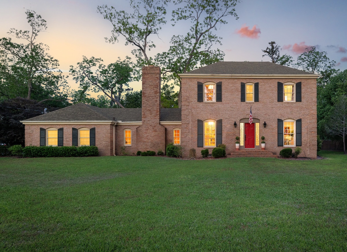 Te damos la bienvenida a tu alojamiento Southern Comfort de 3000 pies cuadrados y a la puerta de entrada a las aventuras del parque Okefenokee. Preparación de comidas en una cocina de isla totalmente surtida con electrodomésticos eléctricos Whirlpool de acero inoxidable. Disfruta de un gran patio trasero privado listo para una barbacoa de briquetas. El solárium tiene un bar y una mesa de billar de pizarra reguladora. El comedor tiene capacidad para 8 personas frente a la chimenea de leña. El barrio está repleto de arquitectura antes de la guerra y pinos imponentes. Estás a pocos minutos del centro de la ciudad.