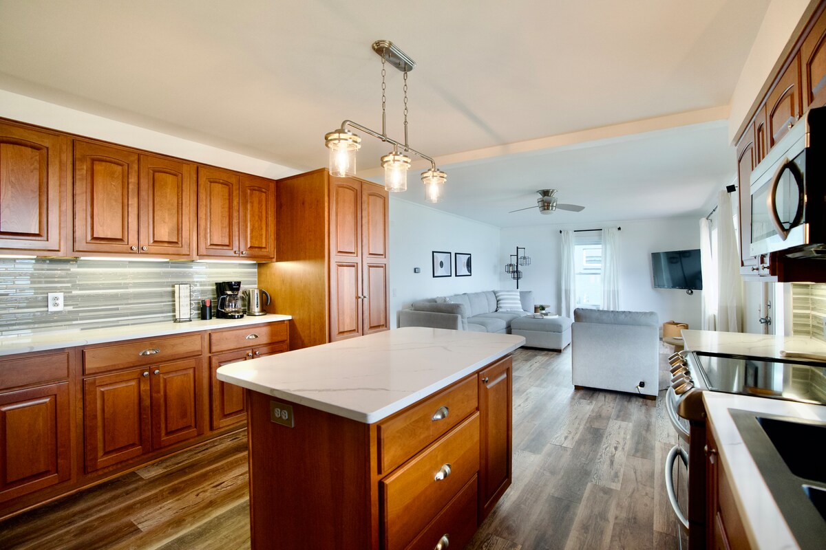 Nuestro alojamiento se encuentra en un hermoso entorno boscoso de 2,5 acres. Tenemos rutas de senderismo alrededor del bosque y un hermoso césped para sentarse afuera y disfrutar. ¡Nuestra ubicación no puede ser mejor! Estamos a 20 minutos del centro de Grand Rapids, a 20 minutos del casino Gun Lake, a 20 minutos del aeropuerto, a 35-40 minutos del lago Michigan y a 25 minutos del área recreativa Yankee Springs. Todo el nivel inferior está configurado como un espacio privado para que lo disfrutes.