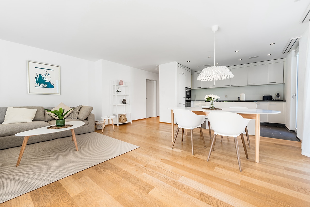Apartamento tranquilo y moderno | Excelente ubicación, estacionamiento gratuito, llegada autónoma ¡Te damos la bienvenida a tu tranquilo refugio en Kreuzlingen! Nuestro elegante apartamento impresiona con un diseño moderno y una excelente ubicación, cerca del centro y, sin embargo, agradablemente tranquilo. Disfruta de la comodidad de estacionamiento gratuito y llegada autónoma flexible. Ideal para descansos relajantes, viajes a la ciudad o viajes de negocios y de placer.
