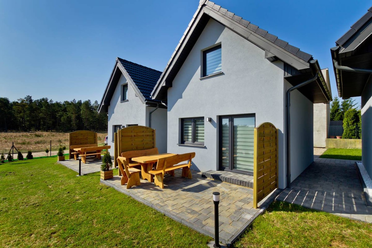 La propiedad está situada en una parcela grande (1400 m2), en una zona tranquila, en las inmediaciones de un bosque. En las inmediaciones hay carriles bici que conducen a hermosas playas de arena. En el cuidado del medio ambiente y en armonía con la naturaleza, nuestra casa es libre de emisiones, equipada con una bomba de aire y energía fotovoltaica. Nuestra oferta incluye una sauna profesional, aparcamiento gratuito, wifi, tumbonas, parrilla, parque infantil, dos bicicletas, minicancha de voleibol, lavadora, secadora, cafetera y mucho más.