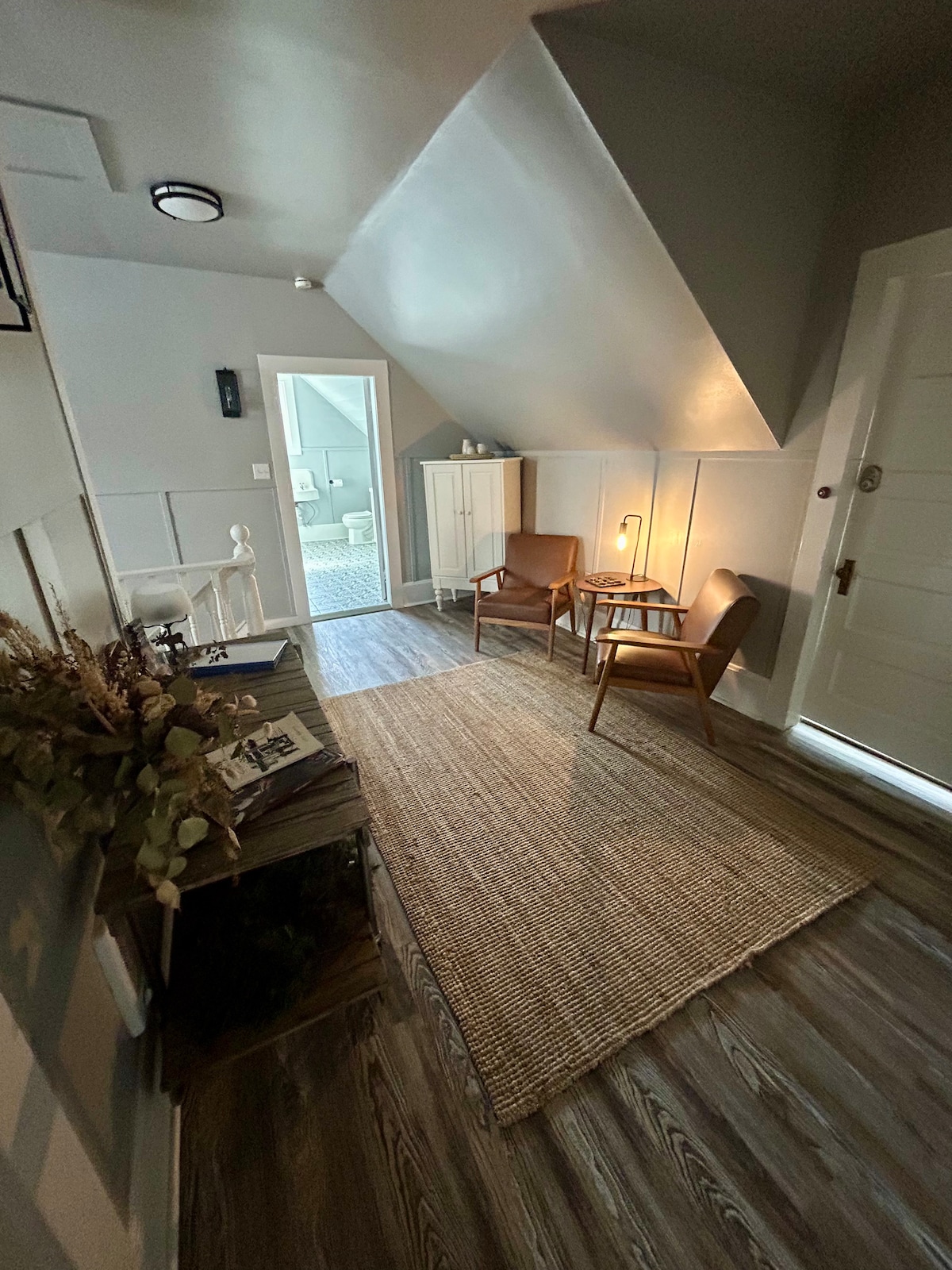 Nuestra habitación más espaciosa, la habitación n.º 3, tiene dos camas tamaño queen y una gran vista de Roslyn. La habitación n.º 3, que una vez fue un consultorio dental, tiene su propia sala de estar privada y dos pequeños lavabos. El Dr. Joel Fleischman se alojó aquí una vez... ¡es broma! Somos el único alquiler vacacional/Airbnb en el centro de Roslyn, ubicado entre el bar de vinos Corks y a menos de 200 yardas del bar más antiguo e infame de Washington, The Brick.