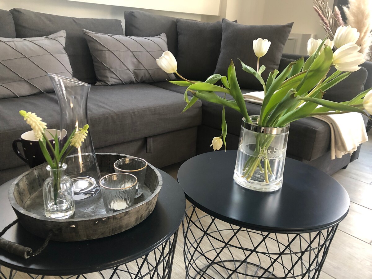 Ponte cómodo en nuestro hermoso y espacioso apartamento. Ya sea con amigos o familiares. Aquí estás en el lugar correcto. Este apartamento totalmente equipado ofrece todo lo que necesitas. Y además, está cómoda y elegantemente amueblado. Una gran terraza cubierta te invita a disfrutar del aire libre. Los dormitorios están equipados con una cama doble (180 y 160). Si viajas con un bebé, podemos proporcionarte todo lo que necesites.