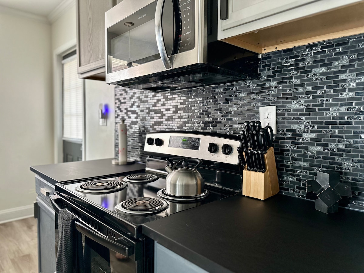 ¡Disfruta de una encantadora casa de huéspedes independiente de 100 años con 522 pies cuadrados de espacio! Perfecto para parejas o personas que viajan solas, este refugio que admite mascotas está a solo unos pasos del vibrante Crosstown Concourse. Cuenta con una cocina totalmente equipada, una barra de café surtida, un baño renovado, wifi rápido y aparcamiento privado fuera de la calle. El espacio principal es de estilo estudio con una cama tamaño queen y televisión equipada con Roku. ¡Anfitrión local de Memphis!
