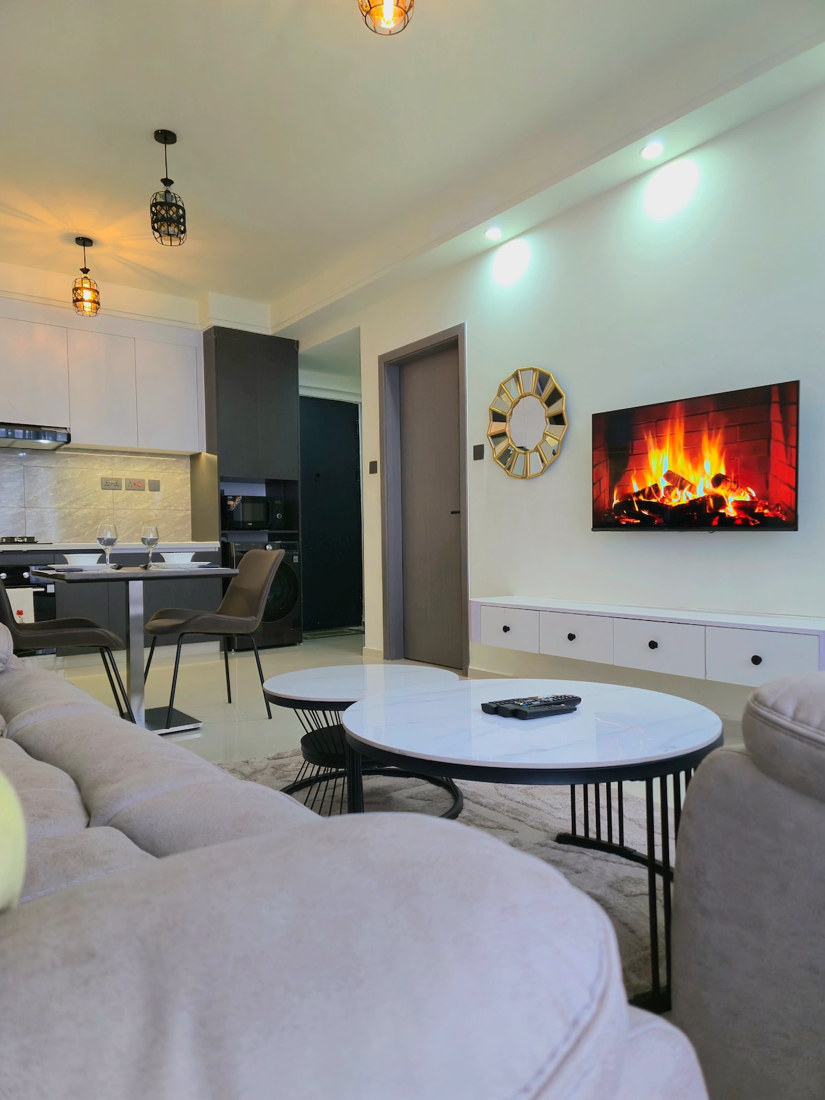 Escápate a nuestro moderno oasis de un dormitorio con una mampara de vidrio clásica y cocina abierta, a solo 20 minutos del aeropuerto. Disfruta de atracciones cercanas como el Parque Nacional de Nairobi y el Centro de Jirafas, con el Centro Yaya y el Arboretum cerca para ir de compras y paseos por la naturaleza. Rodeado de los mejores hospitales y restaurantes, el departamento ofrece seguridad las 24 horas del día, los 7 días de la semana y un gimnasio, combinando perfectamente el encanto de la ciudad con la aventura africana. Garantizamos el flujo de energía 24/7 de nuestro generador de respaldo en caso de cortes.