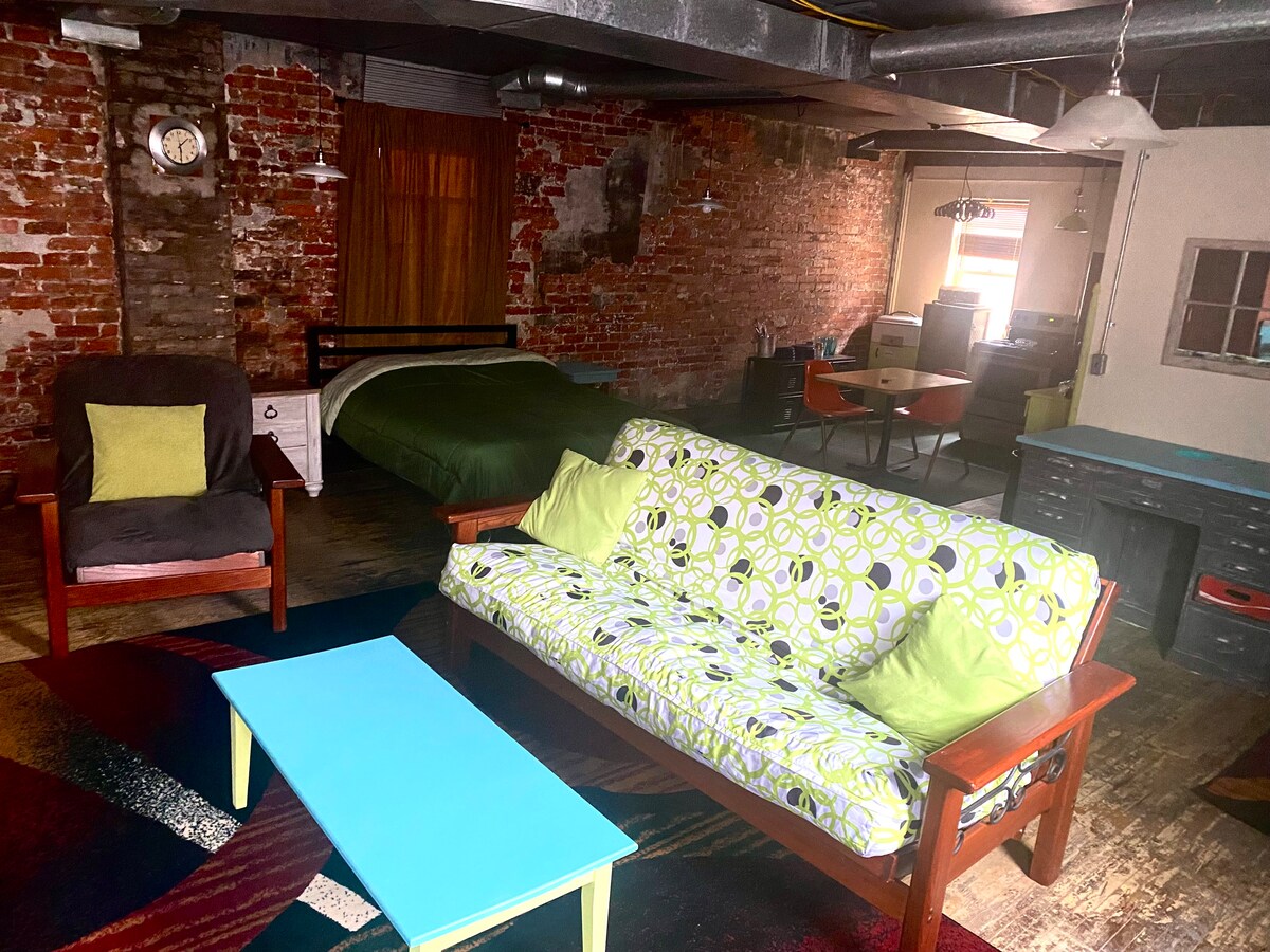 You are within walking distance to the historical downtown district, where you will find food and shopping. You can walk to the Backhome Festival, RegattaFest, Vintage Regatta, and other Main Street events. This apartment was a commercial building converted into an apartment. The stand up shower is small. The kitchen has a full size stove and refrigerator. There is a large stainless steel table for food prep. There is one large sink for washing dishes and no dishwasher.