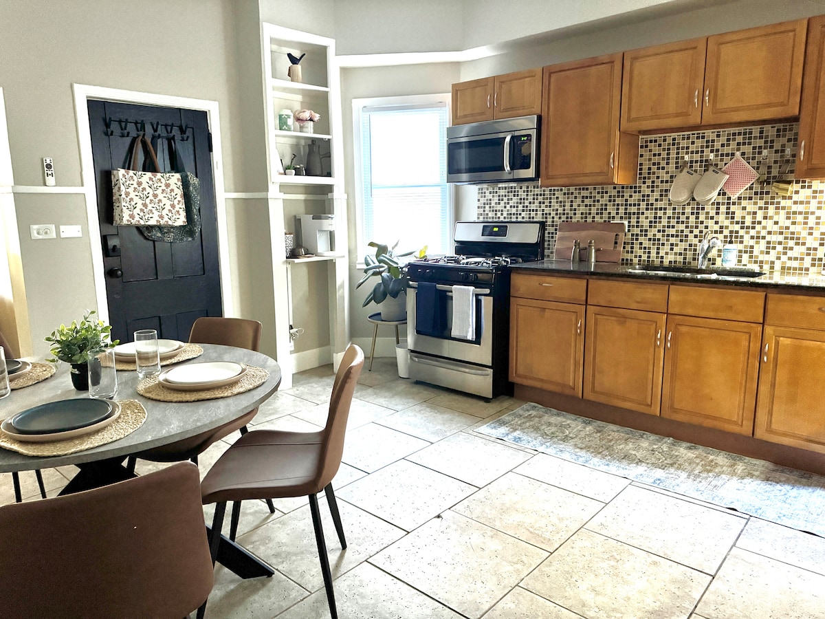 ¡Bienvenido a Cottage52! Nuestra casa de campo urbana actualizada en Detroit Shoreway es la plataforma de aterrizaje perfecta para visitar Cleveland. Compras, restaurantes, eventos, todo cerca o a poca distancia en coche de Uber. Cocina completa con aperitivos y bebidas. Dos dormitorios privados, dos baños completos para disfrutar en pareja o en familia. Acabados de calidad, ropa de cama cómoda y muebles únicos. Disfruta del porche delantero o del patio lateral. Patio vallado. Se admiten mascotas con depósito. Cámaras de timbre en la puerta trasera y el patio lateral. Aparcamiento. Aire acondicionado central.