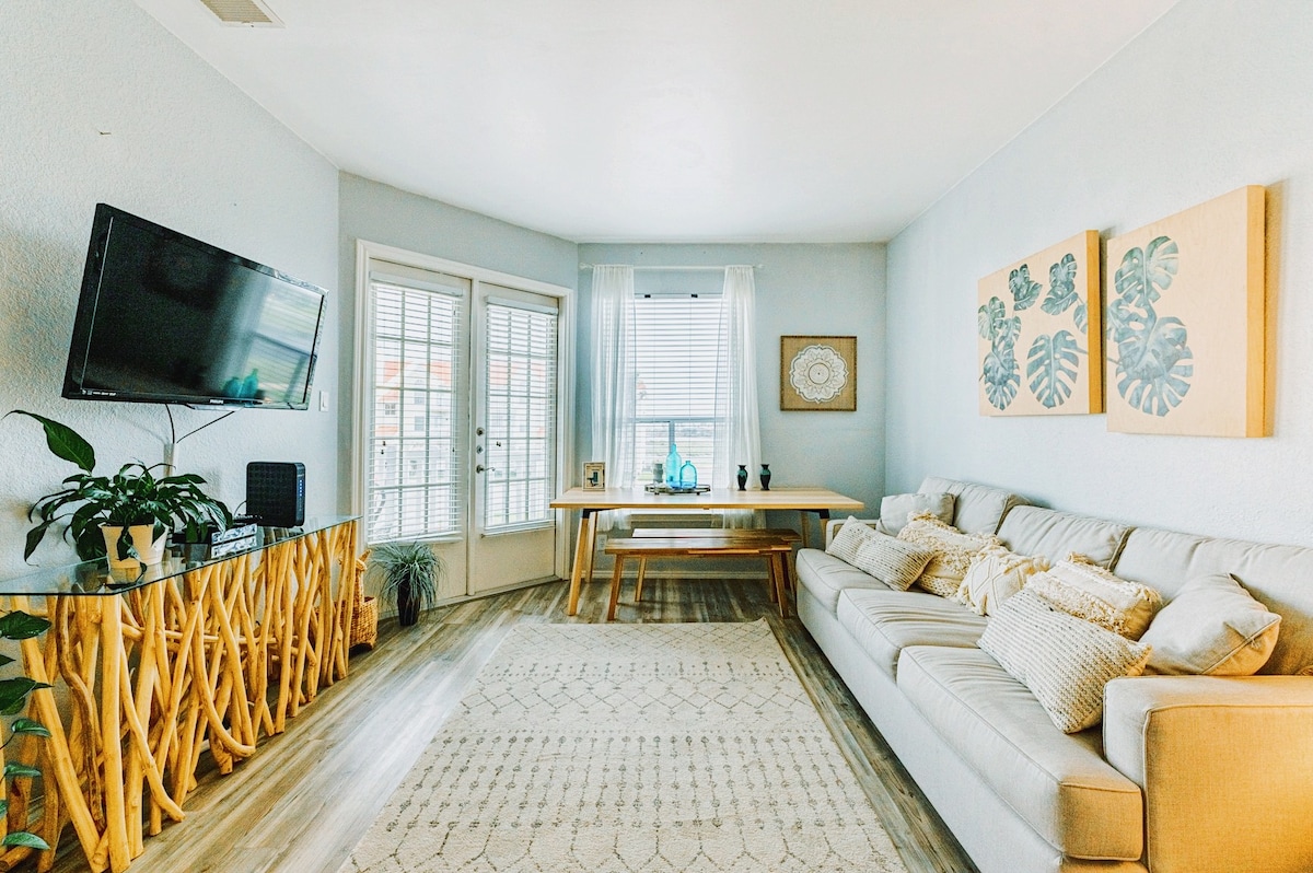 Escápate a nuestro bohemio paraíso de la playa, a solo unos pasos de la playa de Whitecap. Nuestro condominio 1BR, 1BA tiene capacidad para 4 personas y tiene una cocina totalmente equipada, lavadora/secadora y acceso a una piscina climatizada, jacuzzi, gimnasio y sauna. Relájate en la sala de estar decorada con estilo y disfruta de los lugares de interés y de la playa desde el patio, con cómodas tumbonas de mimbre. Reserva tu estancia en nuestro oasis junto a la playa hoy.