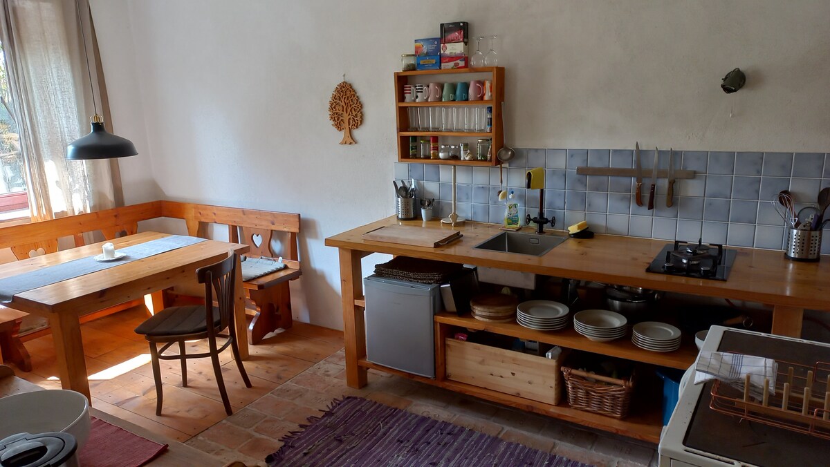 Gemütlich und überschaubar, dies sind die Stärken dieser Unterkunft! Der bewußt reduzierte Haushalt, lädt ein mal ein gutes Buch (Bibliothek ist vorhanden) zu lesen oder sich mit den Lieben, bei einer guten Flasche Wein bei Kerzenschein zu entspannen. Ein Garten mit eigener Feuerstelle und angrenzenden Wald garantieren wunderschöne Naturerlebnisse, also auch bestens für Kinder und Abenteuersuchende geeignet. Im Umkreis von 15km finden sich tolle Ausflugsziele wie eine Therme, eine Ruine, uvm..