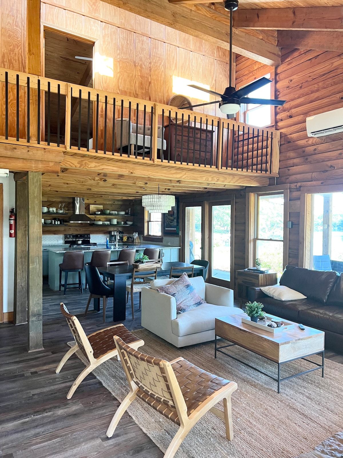 Esta cabaña frente al río es un pequeño refugio íntimo con carácter auténtico. Nuestra cabaña de una habitación tiene acceso al río y vistas al río, espacio para dormir para cuatro personas en una cama tamaño queen y un futón tamaño queen. Una cocina completa con utensilios de cocina de calidad, nevera de tamaño completo, cocina eléctrica con horno y barra de café totalmente surtida. El muelle cubierto está disponible para pescar y si traes un barco puedes usar el muelle para albergarlo. ¡LA CABINA NO ADMITE MASCOTAS!