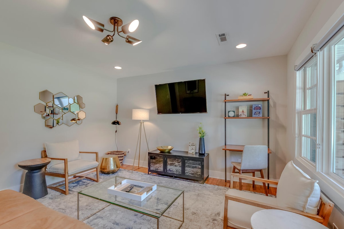 Disfruta del histórico condominio Downtown Franklin, ¡ubicado a unos pasos del corazón de Main Street! ¡Totalmente renovado con un estilo clásico y chic! ¡Encuentra tu yo en el corazón de Franklin, con los mejores restaurantes, boutiques, entretenimiento y más de la zona a poca distancia! ¡Fácil estacionamiento y zona muy transitable! Unidad del segundo piso con entrada privada. Dormitorio ⭑ principal (cama tamaño king + baño completo). La sala de⭑ estar funciona como segundo dormitorio con puertas francesas para mayor privacidad (sofá cama tamaño queen + baño completo)