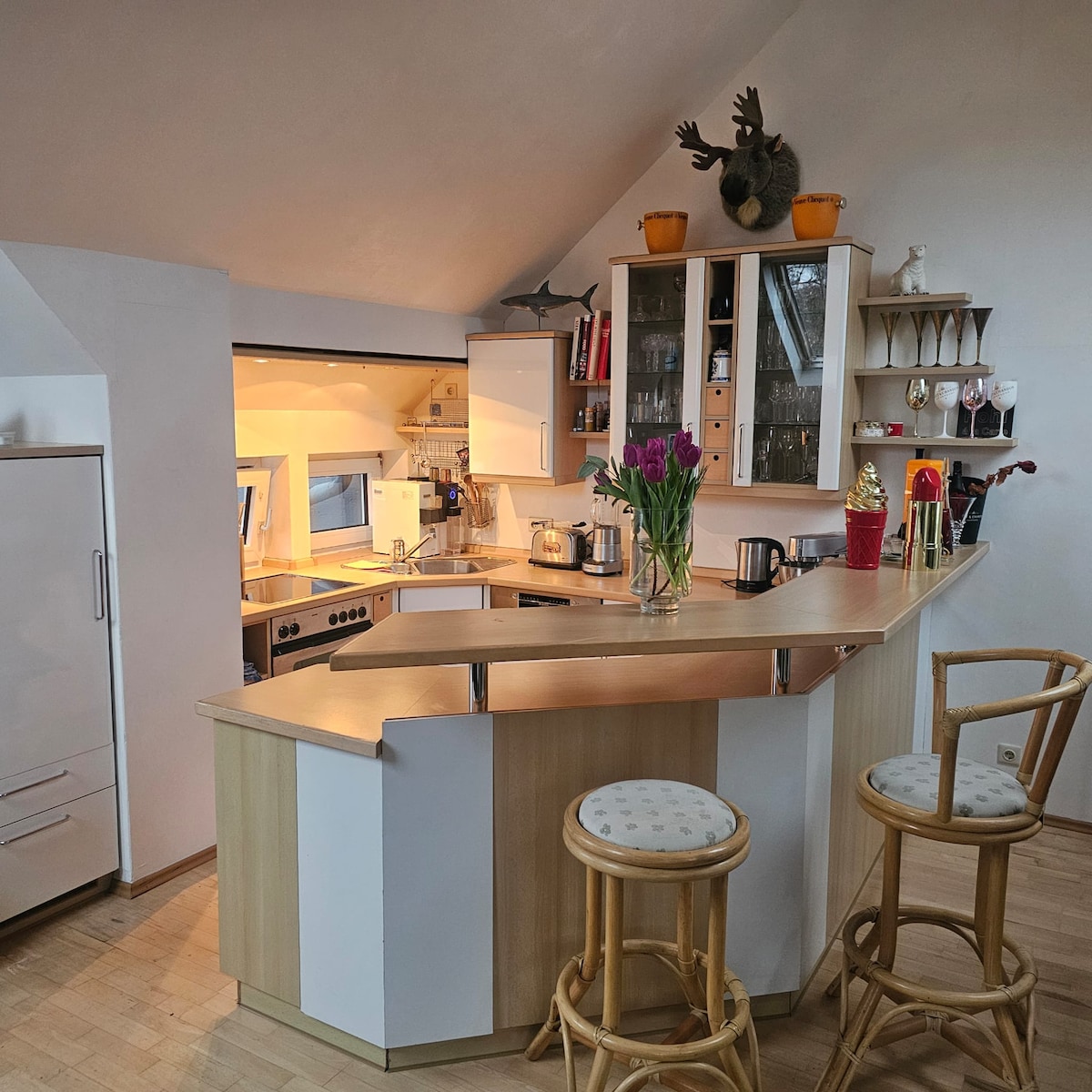 Este departamento está ubicado en el piso superior y ofrece espacio para 2 personas. Pasarás tus vacaciones en un apartamento vacacional con una cocina totalmente equipada, cafetera, hervidor de agua, lavavajillas, estufa eléctrica con vitrocerámica, horno, microondas, vajilla, baño con ducha y inodoro, secador de pelo, espejo de maquillaje, dormitorio con cama doble, sala de estar con TV de pantalla plana, satélite/cable, WLAN. Esperamos un balcón orientado al sur con una vista fantástica.