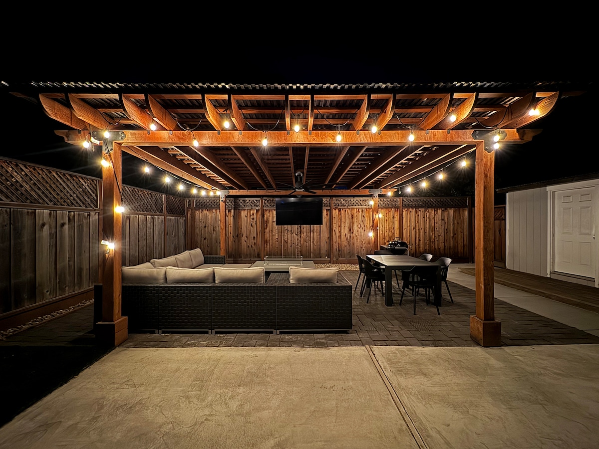 Silicon Valley Luxe: Retiro de alta tecnología de nueva construcción cerca de NVIDIA, Apple y Levi's Stadium. Diseñado para un trabajo sin interrupciones y viajes sin esfuerzo. • Trabajo/Tecnología: 2,1 Gbps, escritorio y cargador Tesla Universal EV, televisores inteligentes y lavadora/secadora LG • Tránsito: a 15 minutos a pie de VTA, el mejor truco para los eventos del Levi's Stadium. • Cocina del chef: cocina de gas, llenador de ollas y estación de espresso • Spa Living: duchas de lluvia, ropa de cama de hotel y persianas opacas. • Patio privado: patio cercado con fogata y barbacoa.