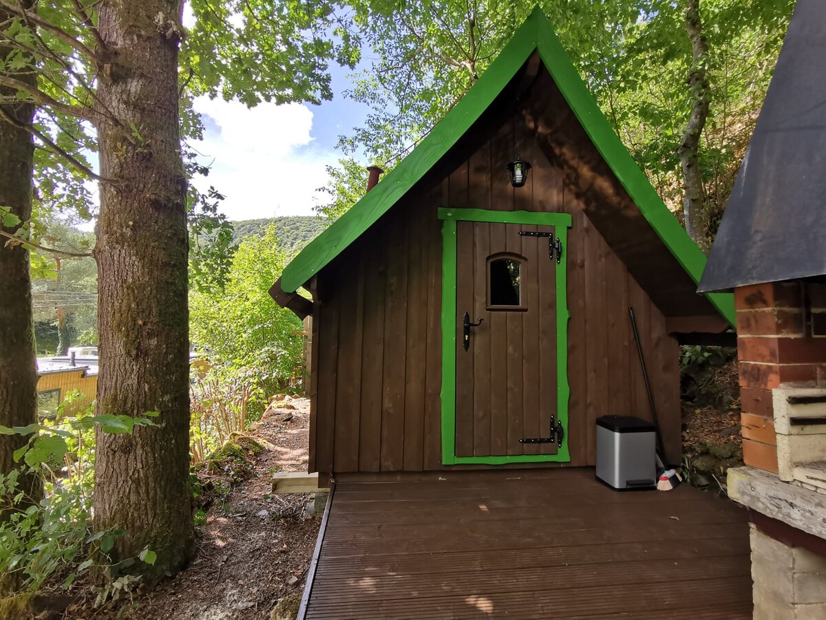 ¡Minicasa hecha a mano con amor! Vida moderna en un espacio pequeño: calefacción por suelo radiante, ducha caliente, acogedora sala de estar con vistas panorámicas y una cama tipo loft con vistas. La cocina incluye lavavajillas, nevera con congelador, cocina de gas, sofá grande, Wi-Fi y proyector. Exterior: terraza privada, barbacoa y chimenea, gran jardín. A solo 10 minutos del embalse, perfecto para practicar deportes acuáticos y relajarse. Senderos para caminar justo afuera de la puerta, buenas conexiones de autobús y tren. Estacionamiento disponible.