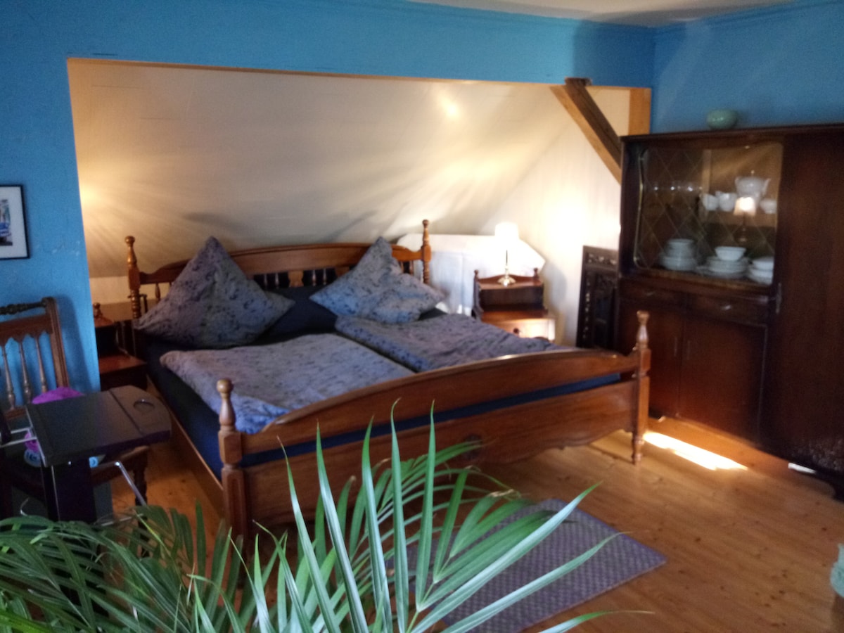 Nuestra casa está situada en Husby (con supermercado, panadería, gasolinera, farmacia, médicos) cerca de Flensburgo. Las playas del mar Báltico están a 5-10 km. Tu apartamento está en el primer piso de una casa centenaria junto a la iglesia. La estación de tren Husby está cerca. Conexión cada hora a Flensburgo y Kiel. La ubicación es ideal para hacer excursiones en bicicleta. El apartamento está amueblado de forma moderna con algunas piezas antiguas. Cocina totalmente equipada. Tus anfitriones tienen un perro, hablan alemán e inglés.