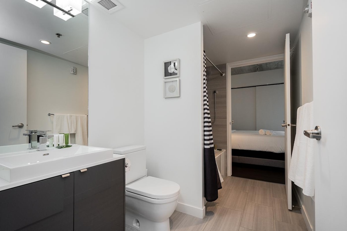 *** Actualmente hay acceso limitado a las áreas comunes, gimnasio y azotea debido al Covid. Por favor, sigue las pautas normativas. Puede caber 6 si es necesario, pero más adecuado para 2-4 personas** Cerca de 1000 pies cuadrados en el interior. Glasshouse en el centro. Ventanas del piso al techo. Mi alojamiento está cerca de la vida nocturna, el transporte público, el centro de la ciudad, la pista de hockey NHL, los restaurantes, el centro, los parques y los museos . Te encantará mi espacio por la cama cómoda, las vistas, la cocina, el diseño abierto, la lavadora/secadora. STRA-2024-2456470