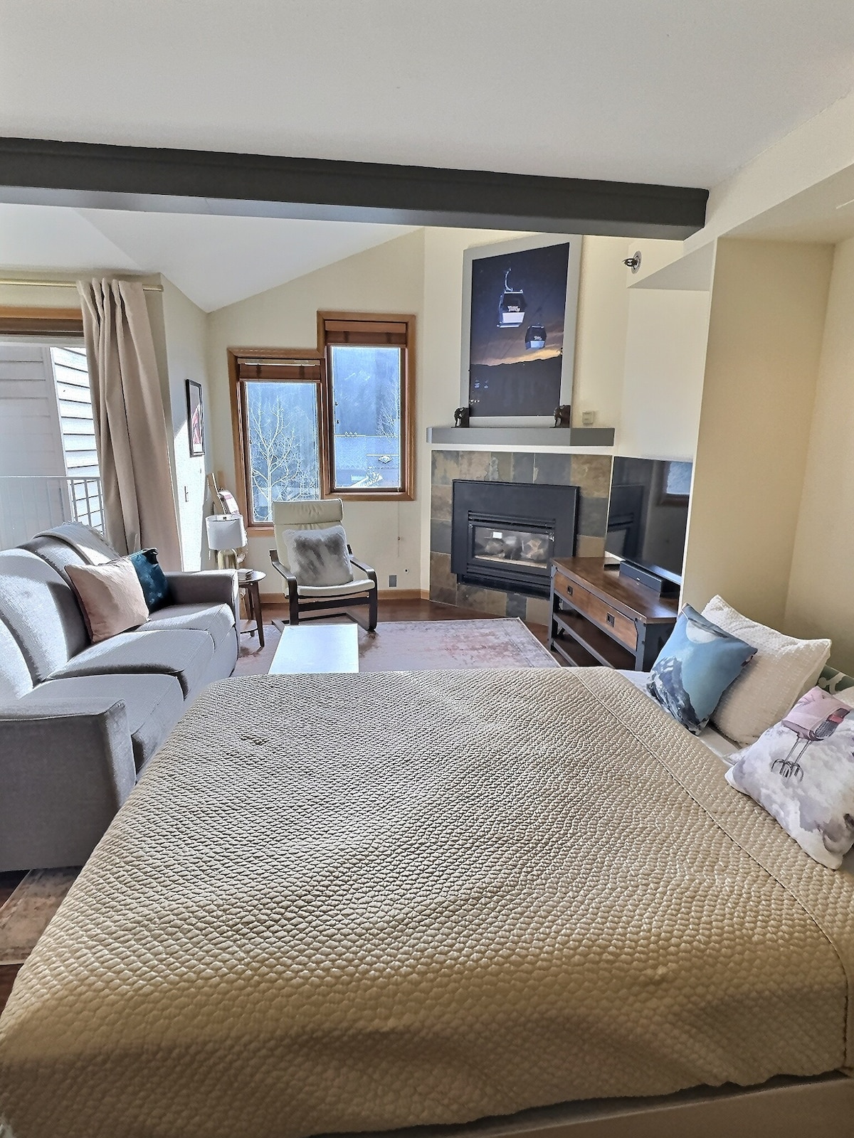 Leone's Den | Un refugio de montaña boutique en la base de Winter Park Resort Entra en el refinado confort alpino de Leone's Den, un elegante estudio a solo unos pasos de las pistas. Ubicado frente a la Base del Pueblo, disfruta de un fácil acceso a restaurantes, tiendas y après-ski, luego retírate a un espacio cálido con una acogedora chimenea y acabados elevados. Relájate en el jacuzzi más grande de Winter Park y regresa a las lujosas sábanas y a las hermosas vistas a la montaña y al pueblo.