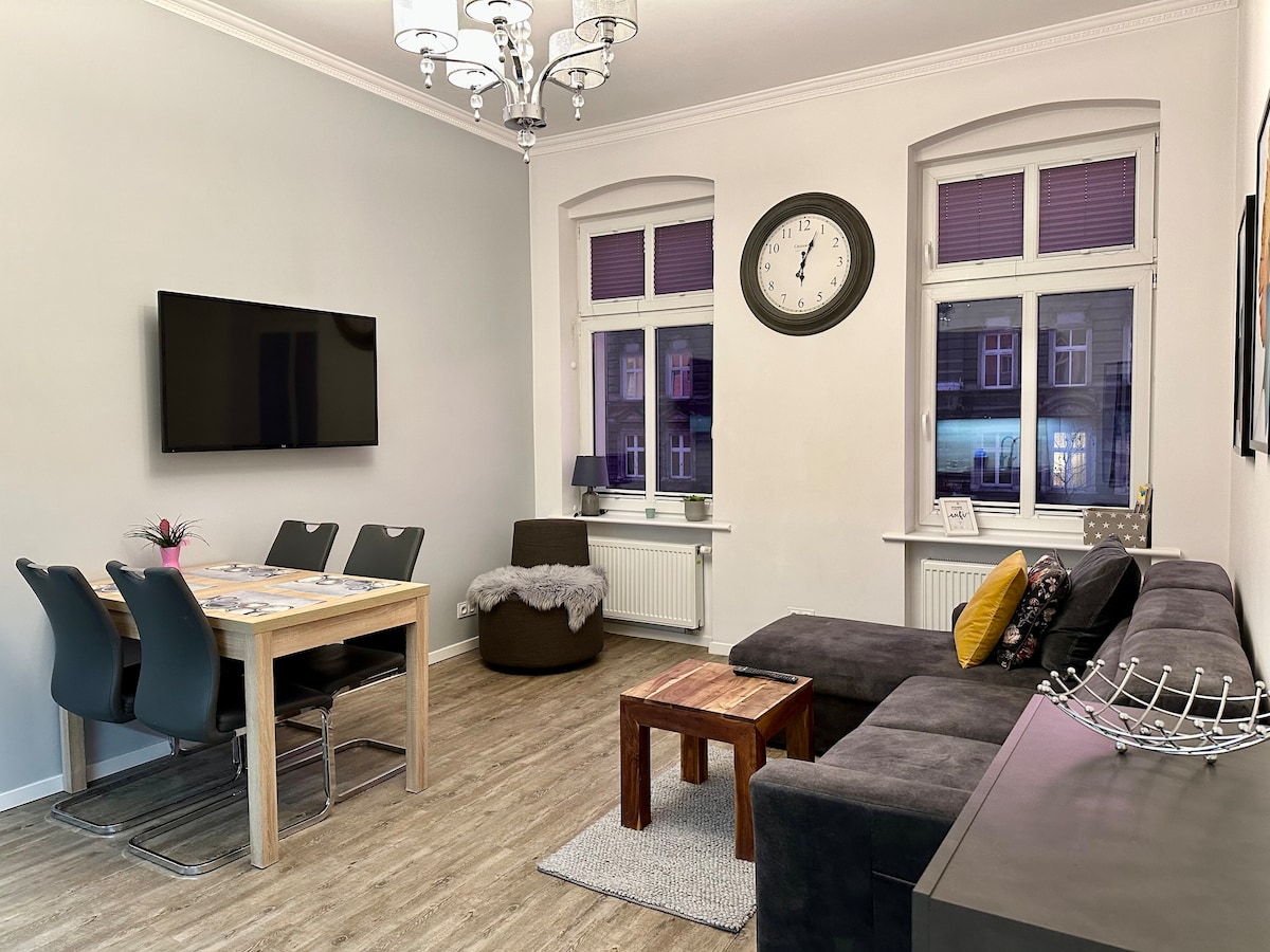 ES: El luminoso y clásico apartamento vacacional se encuentra en el corazón de Szczecin. El apartamento es ideal para familias y ofrece suficiente espacio para hasta 4 personas. El apartamento de vacaciones renovado se encuentra en un antiguo edificio clásico de Szczecin en el segundo piso. En las inmediaciones hay muchos pubs y restaurantes que sacarán una sonrisa a cualquier turista. Esperamos su visita.