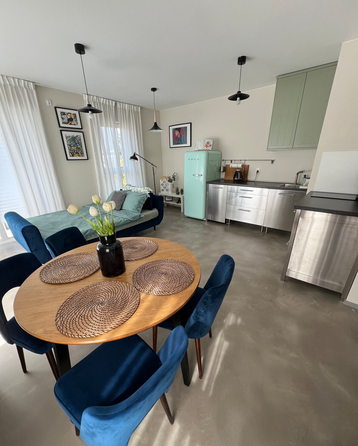 ¿Te gustaría mostrar a tus hijos cómo es la vida en una granja o simplemente relajarte unos días? Entonces estás en el lugar correcto. En la antigua pocilga reformada hay dos dormitorios y dos baños, incluida una cocina y una gran sala de estar. Además de 100 vacas lecheras, también hay gatos, gallinas, alpacas y conejos en la granja. También hay muchos tractores y máquinas que admirar. Se puede hacer una excursión a Szczecin, a solo 10 km de distancia.