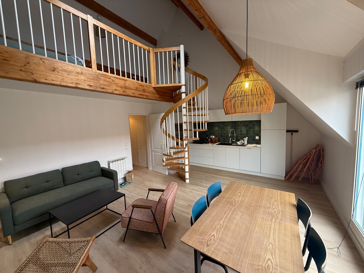 Moderno y nuevo apartamento de 65 m2 con una ubicación excepcional (vistas panorámicas al mar y a los dos capos, acceso directo al malecón y a la playa, a 5 minutos a pie del centro). Compuesto por: - gran sala de estar con cocina abierta a una sala de estar con chimenea, - gran habitación principal - habitación infantil más pequeña - cuarto de baño (ducha, bañera, lavadora, secadora) y un aseo independiente - 5 balcones / terrazas - 2 plazas de garaje - Bodega (bicicletas locales; material de surf)