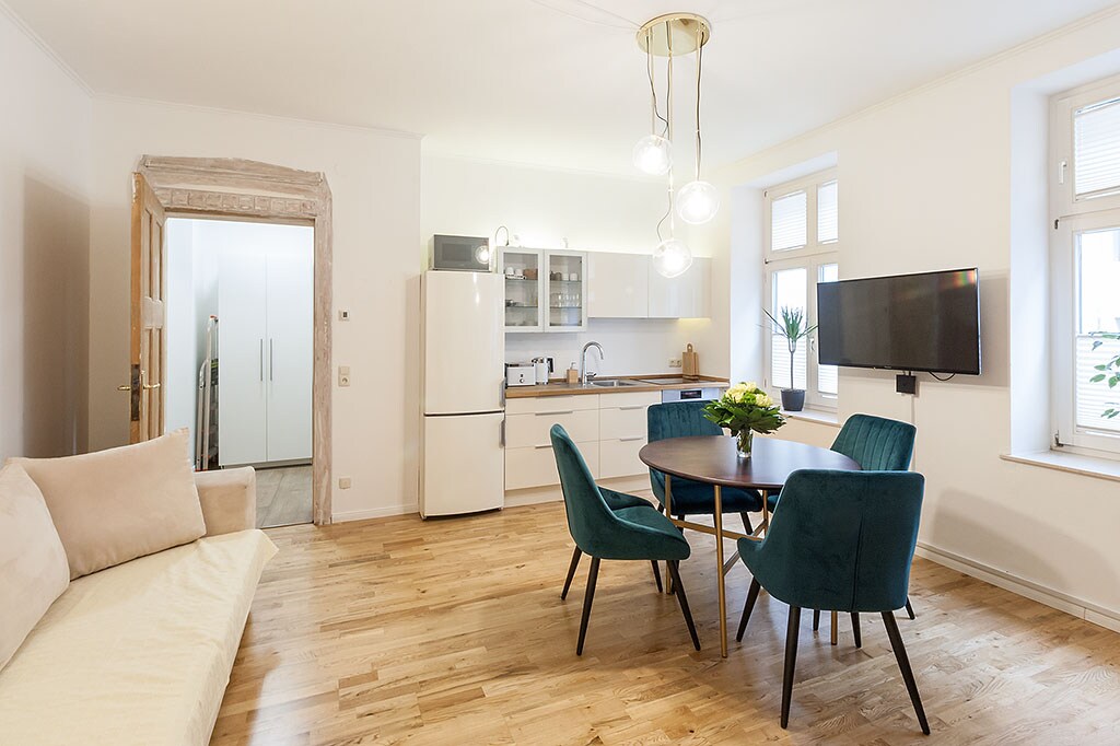 Bienvenido a Auguste Suite No. 1, tu elegante hogar en Leipzig. Este moderno apartamento de dos habitaciones está situado en una calle lateral a pocos pasos del centro de la ciudad, la iglesia de Santo Tomás y Augustusplatz. Disfruta de una cama tamaño king, cocina totalmente equipada, wifi rápido y un entorno tranquilo, ideal para una escapada a la ciudad, un viaje de negocios o una estancia relajada en Leipzig.