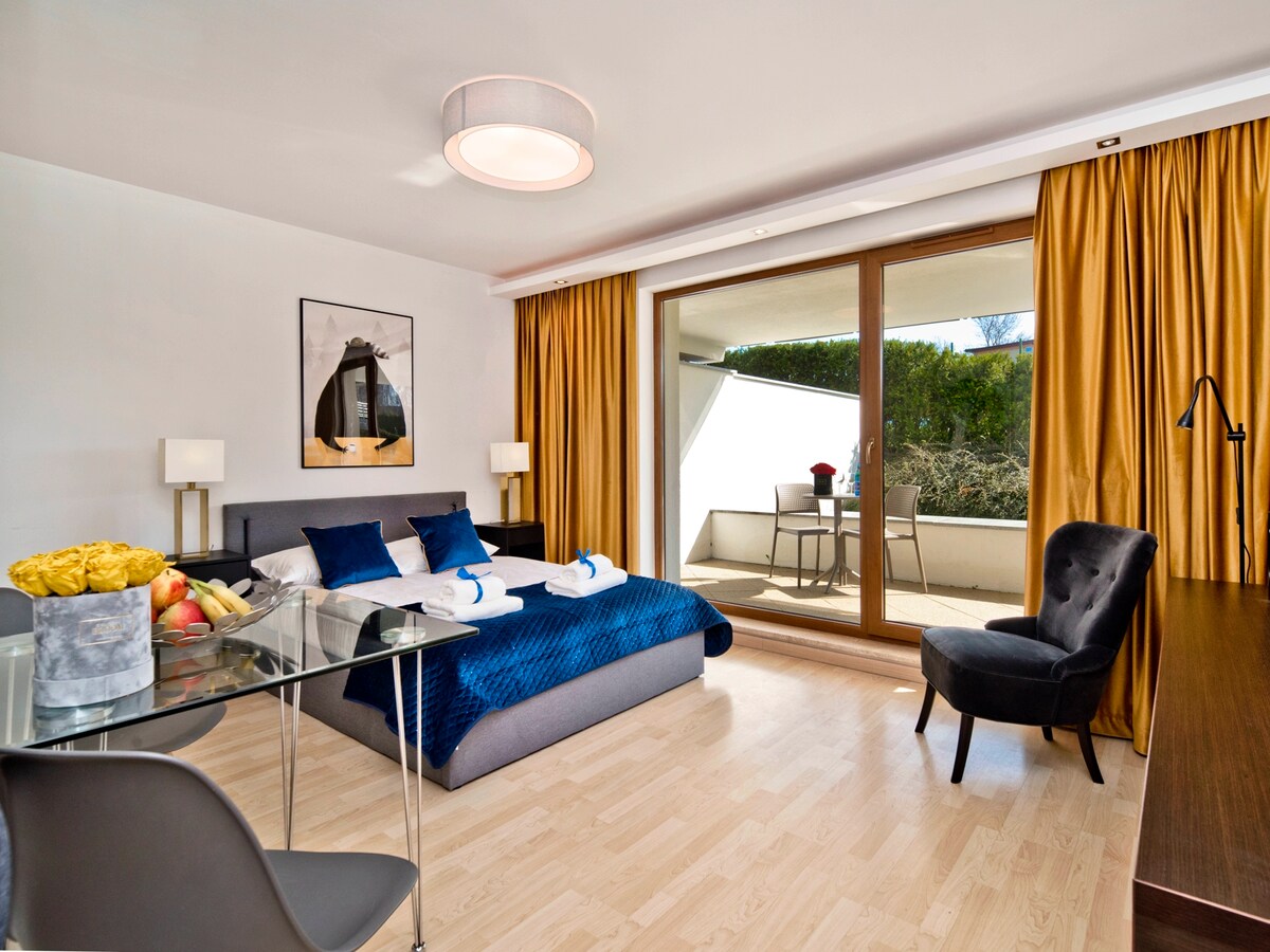 Hermoso departamento con aire acondicionado diseñado con estilo marino. Planeado para un alojamiento cómodo de un máximo de 4 personas. El apartamento contiene cocina totalmente equipada y baño, dos camas dobles, una cama grande de 160x200 cm en el dormitorio y un cómodo sofá cama en la sala de estar. Aire acondicionado con dos unidades separadas para el dormitorio y la sala de estar para la máxima comodidad.