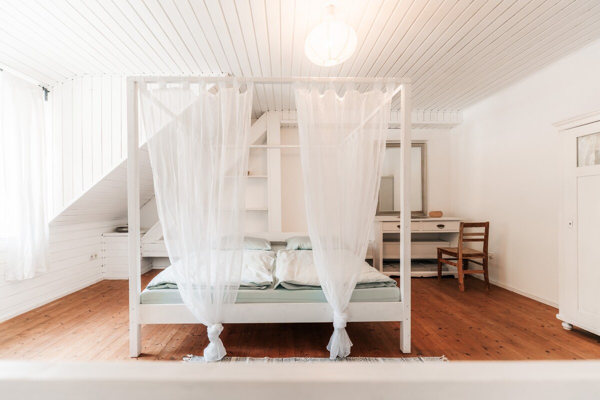 Nuestro Tinyhouse Schneeweißchen ofrece total comodidad en un espacio pequeño. Es una caravana móvil, parcialmente autosuficiente hecha de madera con jardín y terraza. Schneeweißchen tiene unos 18 m² y está equipado con un sistema fotovoltaico. Hay una cocina con una estufa de leña de agua, una placa de gas de 2 quemadores, un baño con una ducha y un inodoro de compostaje. Una cama doble súper grande ofrece espacio para 2 personas. Schneeweißchen se encuentra junto con Rosenrot en un jardín de 600 m².