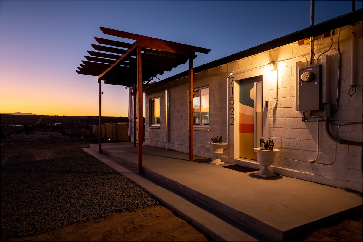 Just 2 miles from the breathtaking Joshua Tree National Park, this midcentury-modern retreat is an ideal year-round base for adventure. With sweeping 360-degree views, the landscape itself creates a memorable backdrop for your stay. Located only 5 minutes from the lively heart of downtown 29 Palms and steps from scenic walking trails, this thoughtfully renovated home combines style, comfort, and character—where every detail is intentional and every piece carries a story.