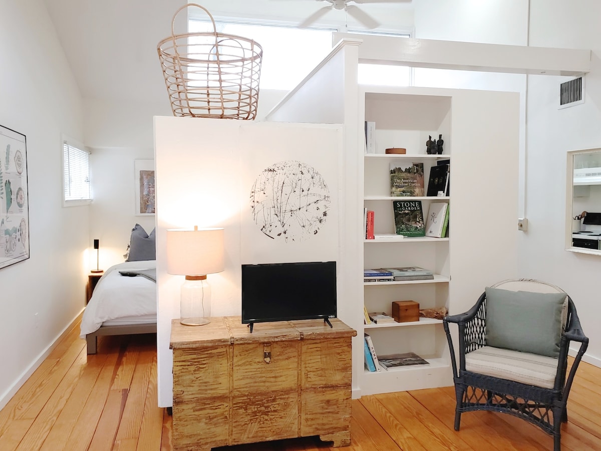 Originalmente construida como estudio de un artista, nuestra casa de campo privada es un espacio completamente restaurado, lleno de luz y maravillosamente sereno, con lujosos y cuidados muebles designados por un diseñador, techos de catedral, suelos de madera, un baño en suite renovado y una cocina completa. Se proporcionan ropa de cama, sábanas y toallas de algodón egipcio de más de 450 hilos recién lavadas, así como artículos de aseo de cortesía. * Totalmente privado, tranquilo y sereno, apto para familias * A 3 minutos en coche de la ciudad.