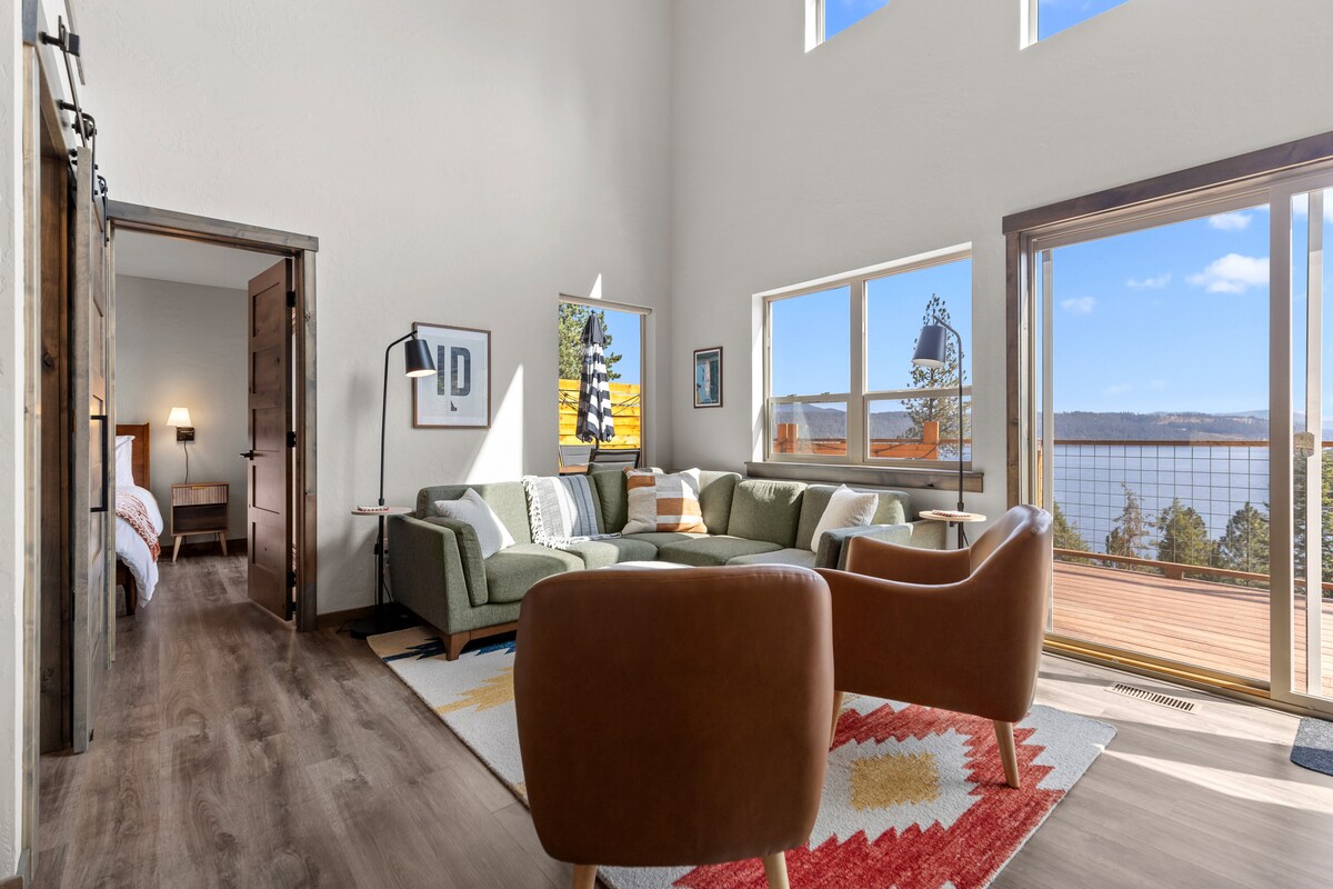 Escape to Hayden Lake. Our waterfront guesthouse is well-equipped for a relaxing stay in beautiful North Idaho. You'll find a modern rustic space with a fully stocked kitchen, cozy fireplace, serene surroundings, and an inspiring view of the lake. During any sort of winter weather, 4WD or snow tires are advised to get you safely in and out of the neighborhood. Availability opens exactly three months before the date, so please check back if you're looking to book more than three months out.