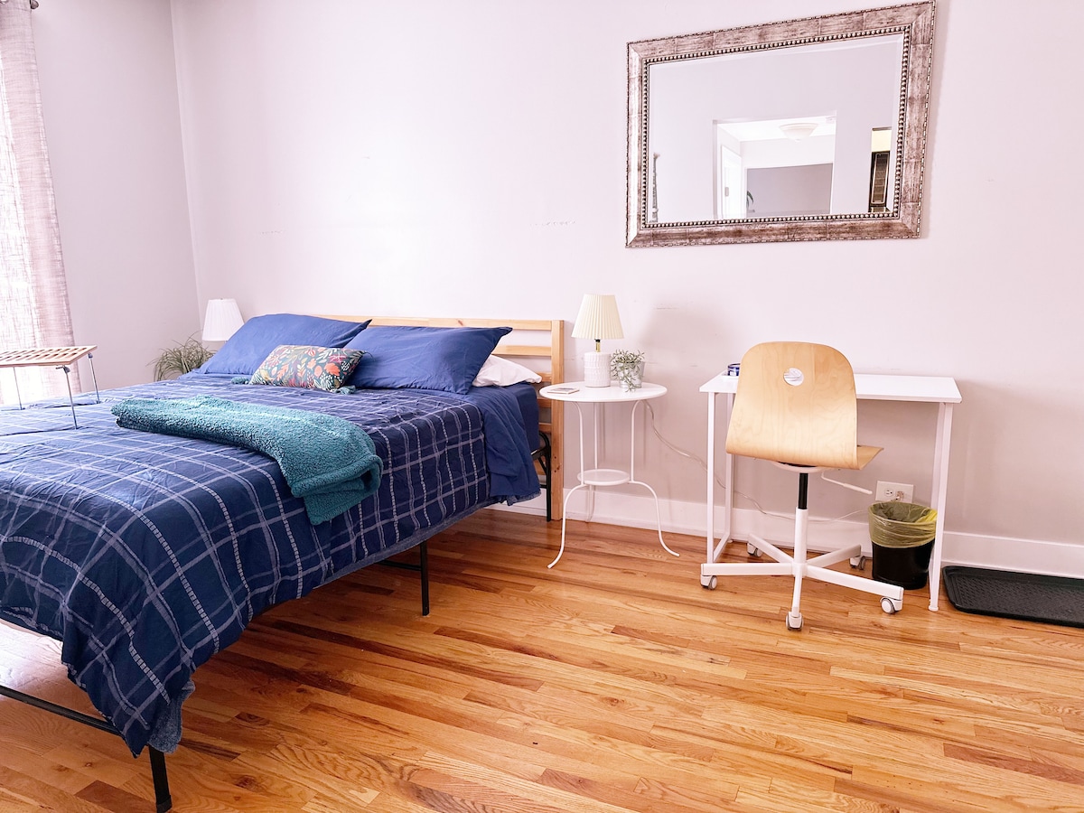 ¡Tu destino de escapada a Wrigleyville te espera! Pasa un divertido fin de semana con temática de béisbol a 3 manzanas de Wrigley Field en este pintoresco barrio. A poca distancia a pie de docenas de bares y restaurantes en Lakeview y a 3 manzanas de las líneas marrón y roja del tren CTA «El». Esta suite puede alojar cómodamente a 4 personas y es perfecta para familias. Una cocina completa, escritorio, cafetera, wifi y TV inteligente pueden ser tu hogar lejos de casa. ¡Reserva tu fin de semana ahora para el próximo partido en casa o concierto!