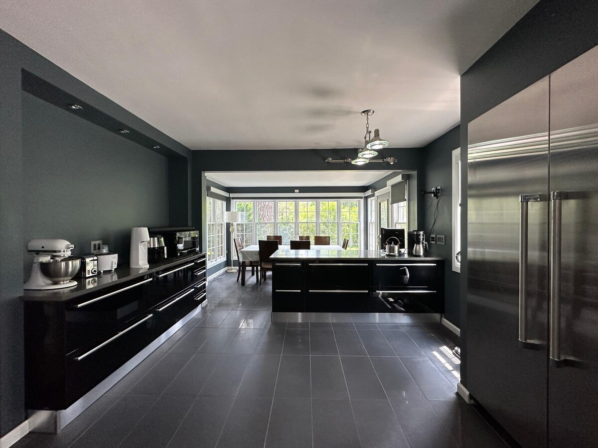 Destacada en Buffalo Spree y Artvoice, esta casa con estructura de madera cuenta con impresionantes interiores de nogal negro e hickory iluminados por ventanas de dos pisos que dan al sol de la mañana. Calefacción por suelo radiante y diseño climático de yeso de tierra. Despiértate en camas tamaño queen y king, relájate bajo terrazas cubiertas y compra justo al lado en la tienda de productos orgánicos de Thorpe. • A 7 minutos del pueblo de East Aurora. • A 24 minutos del estadio Bills. • A 1 hora de las cataratas del Niágara.